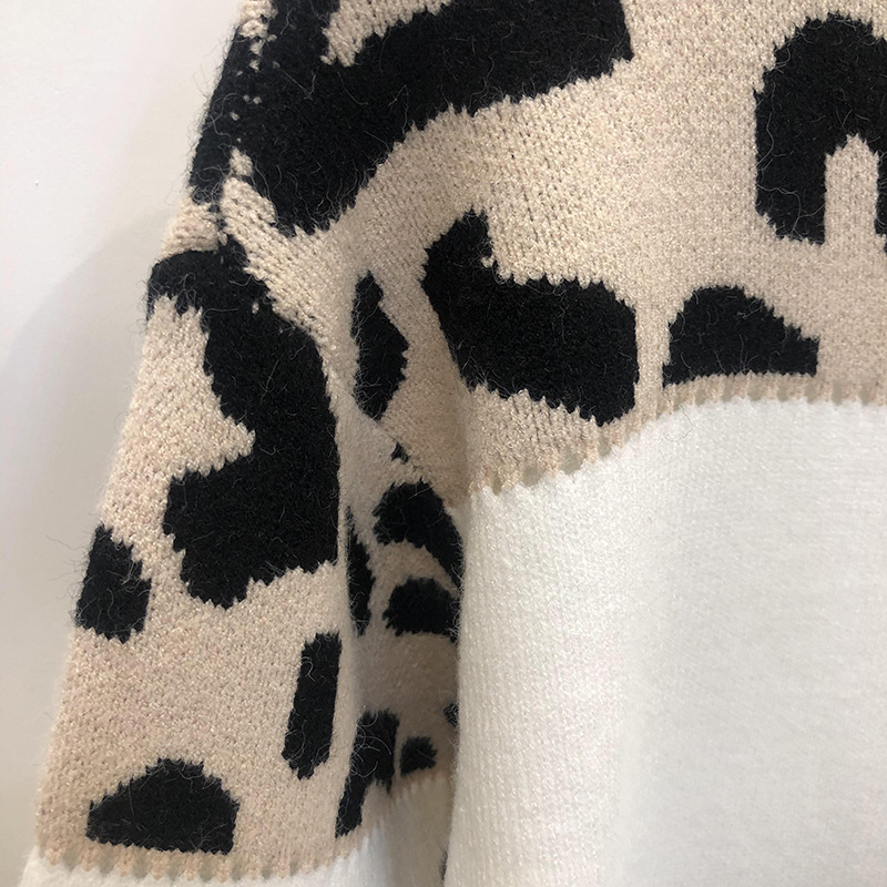 Knitwear women's spring and autumn pullover long sleeve bottoming shirt color-blocking leopard print crew neck casual sweater
