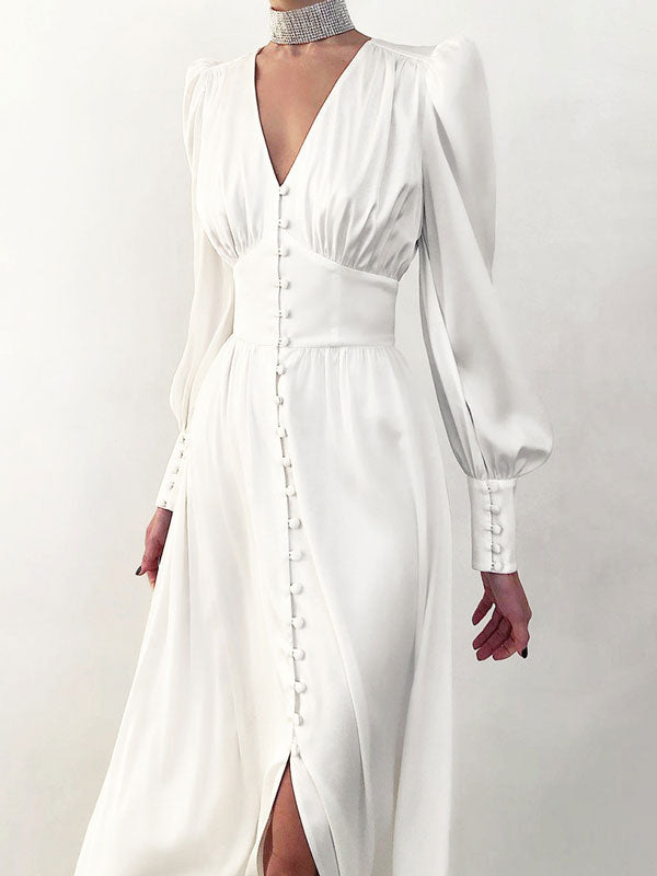 Luxurious satin and eye-catching lantern sleeves combine in this elegant look. offering a graceful silhouette that's perfect for elevating your evening style.