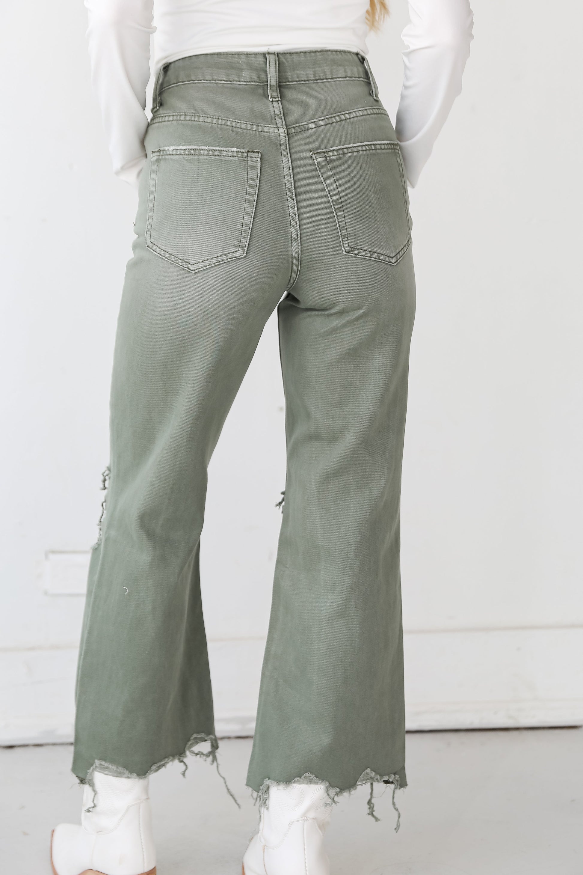 FINAL SALE - Leslie Army Green 90s Vintage Crop Flare Jeans