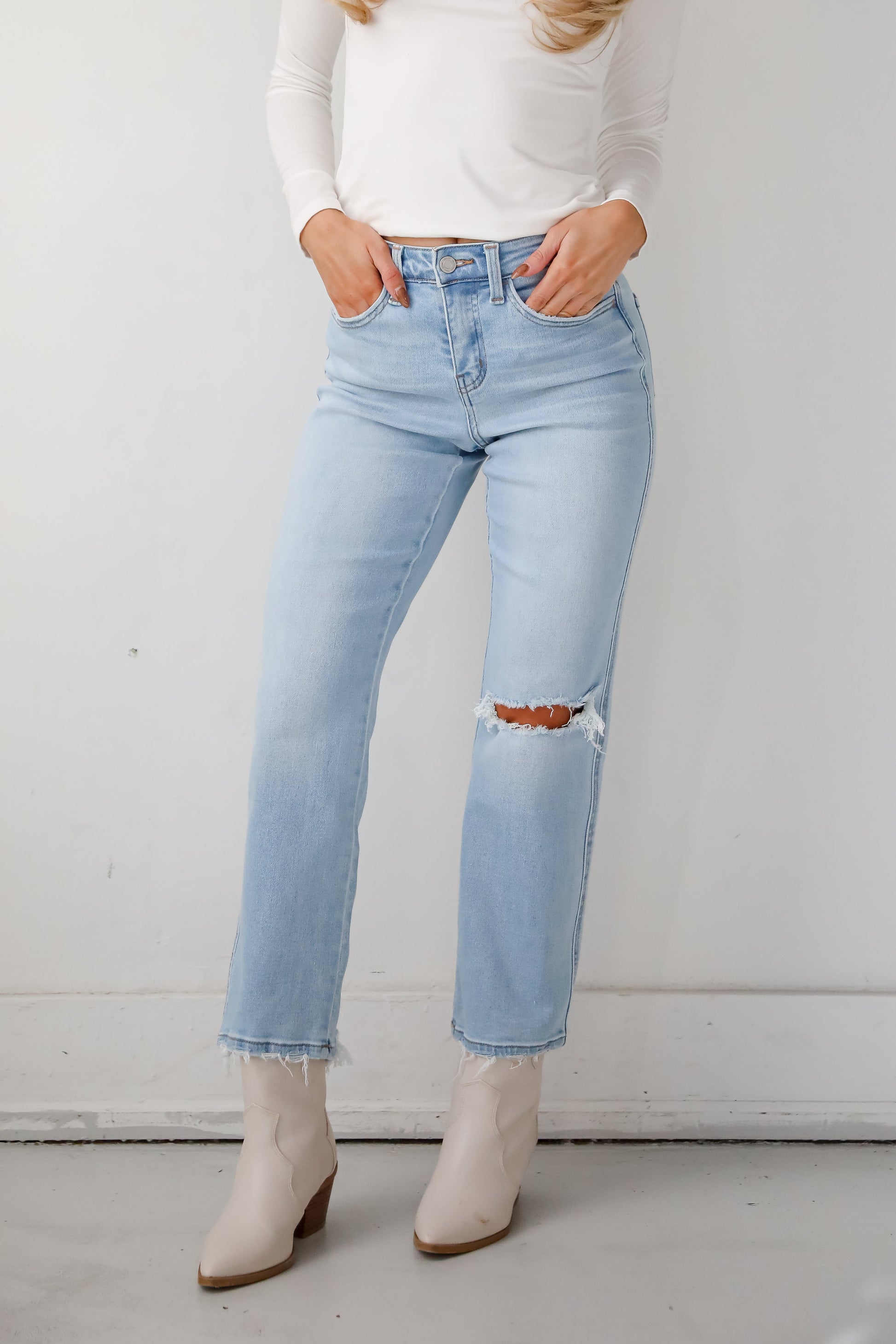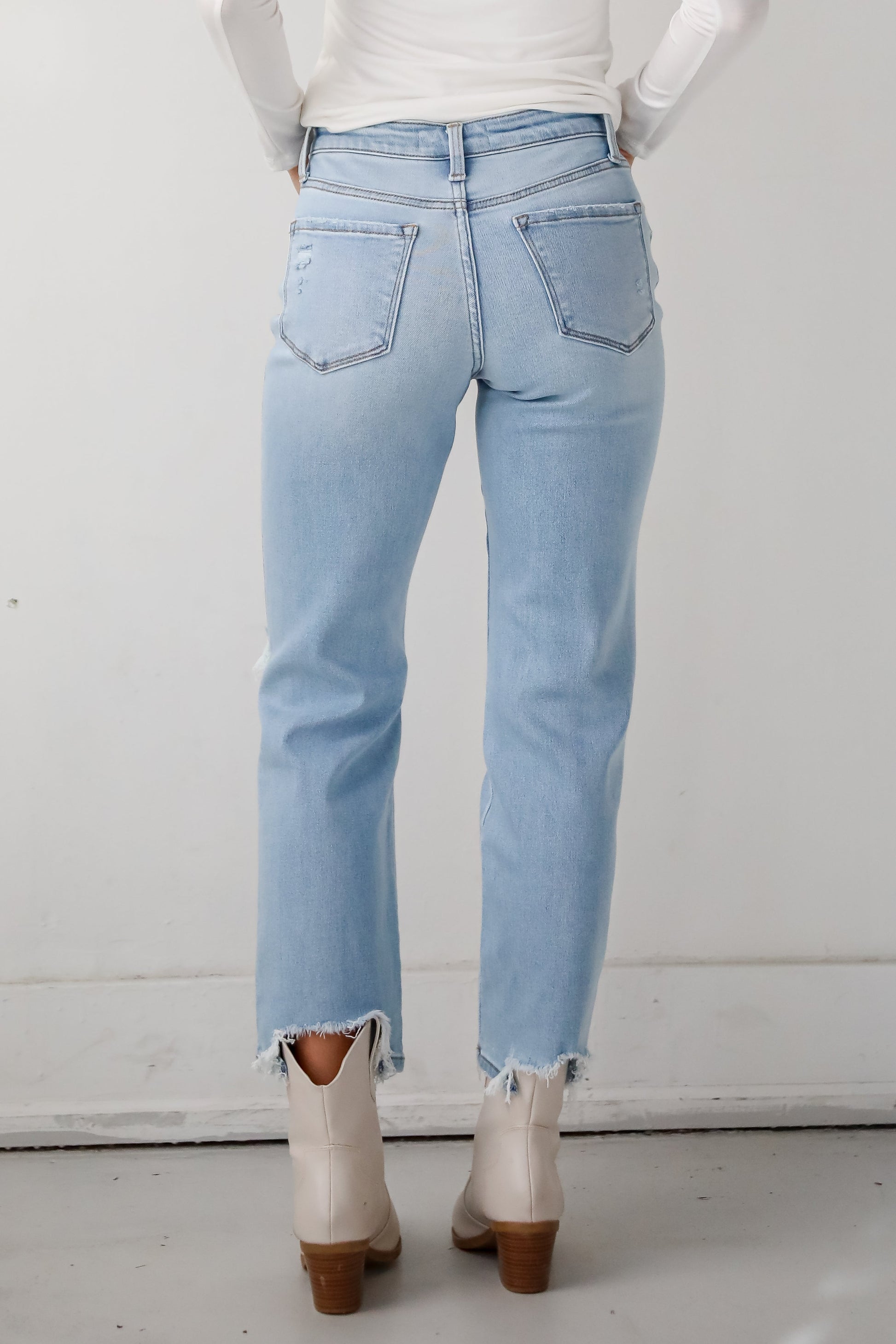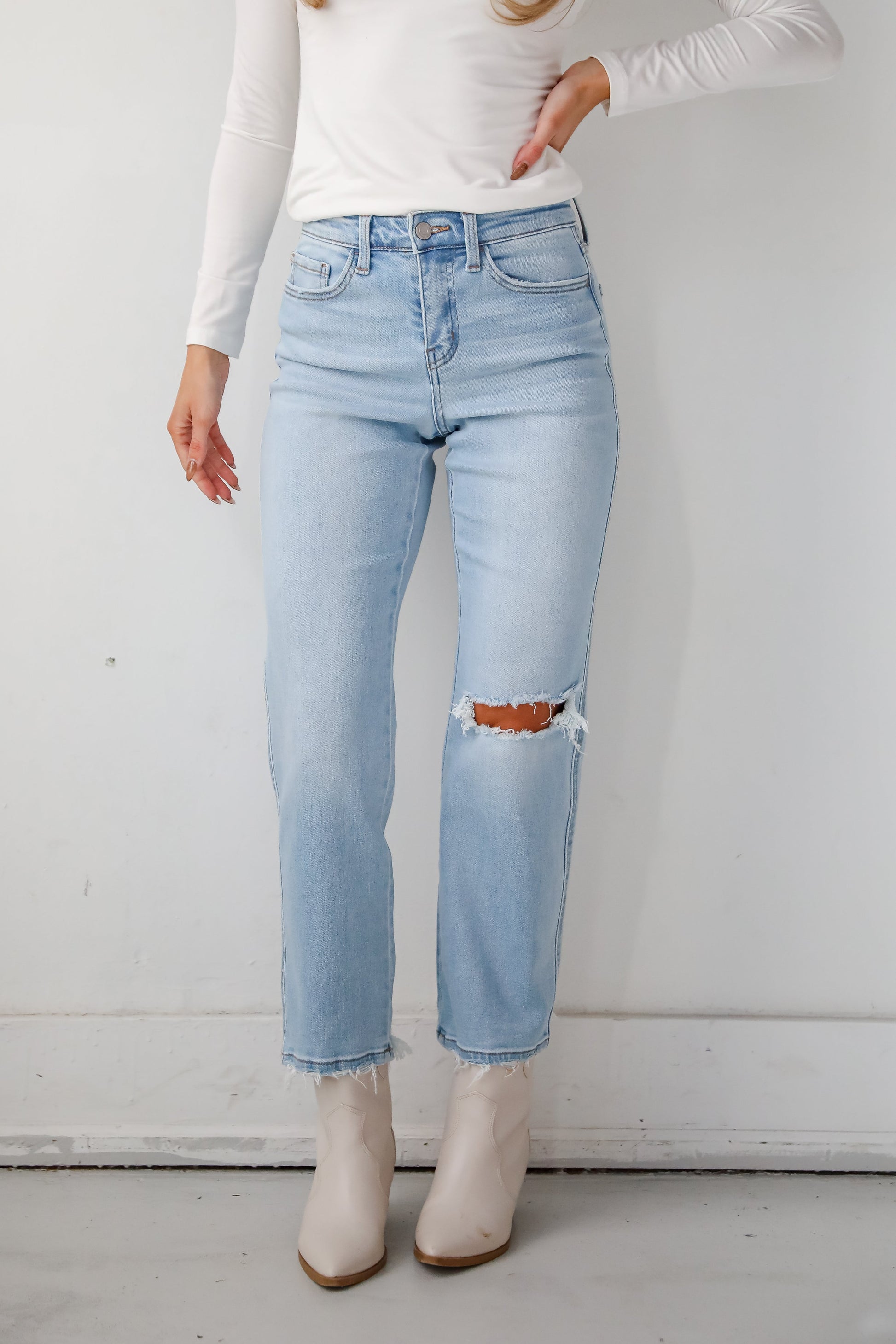 Lindsey Light Wash High Rise Distressed Straight Leg Jeans