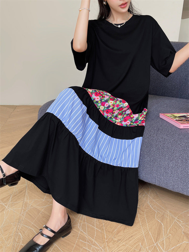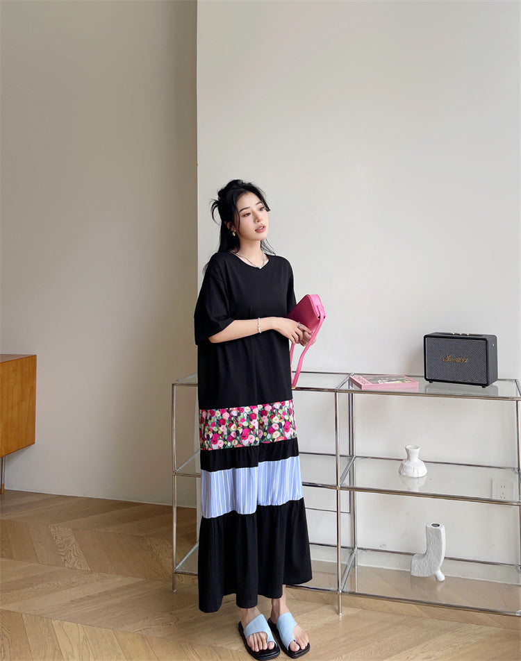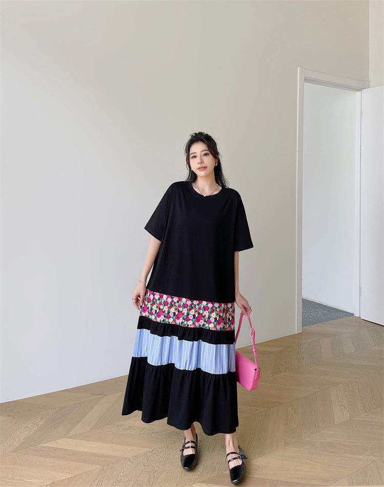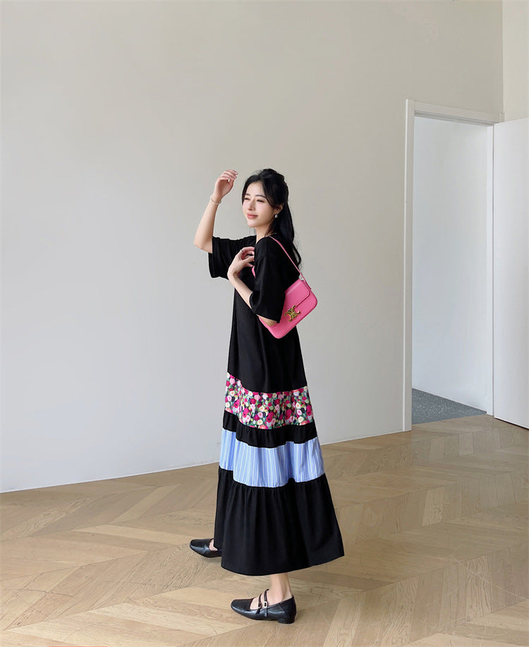 Literary Colorblocking Short Sleeve Midi Dress