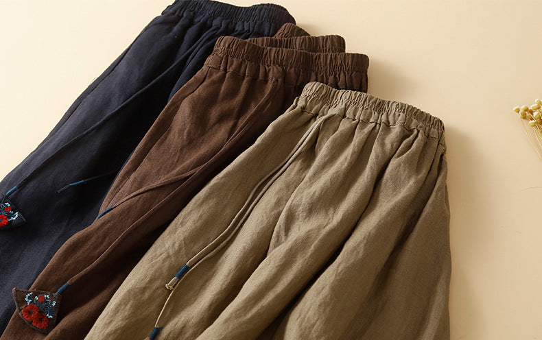 Literary lazy design sense of cotton and linen skirt