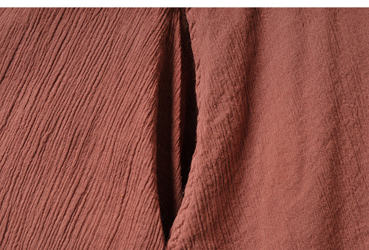 Literary Linen Fake Two Piece Long Sleeve Dress