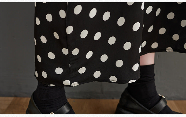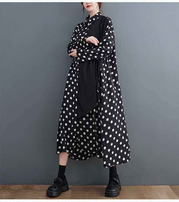 Literary Polka Dot Print Splicing Midi Dress