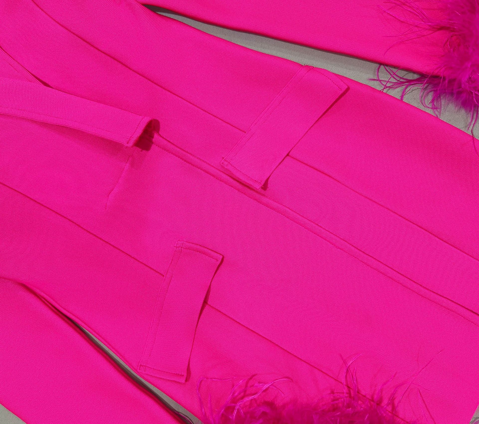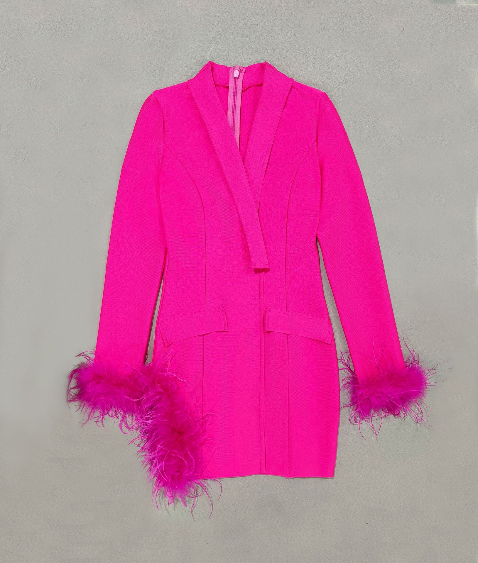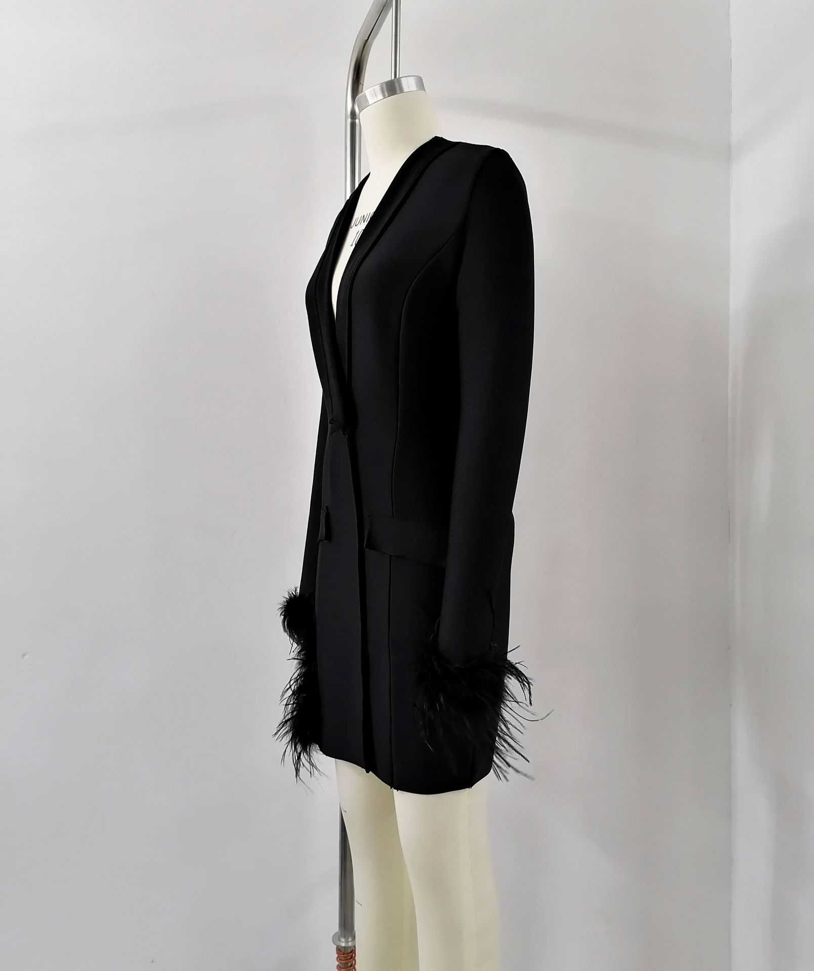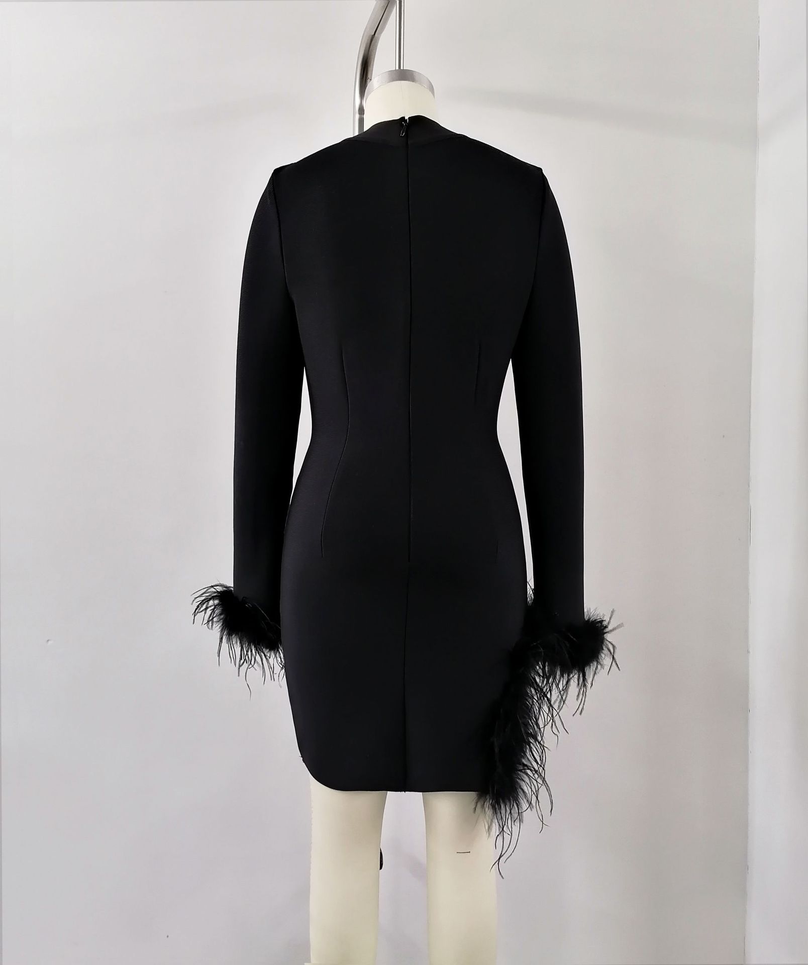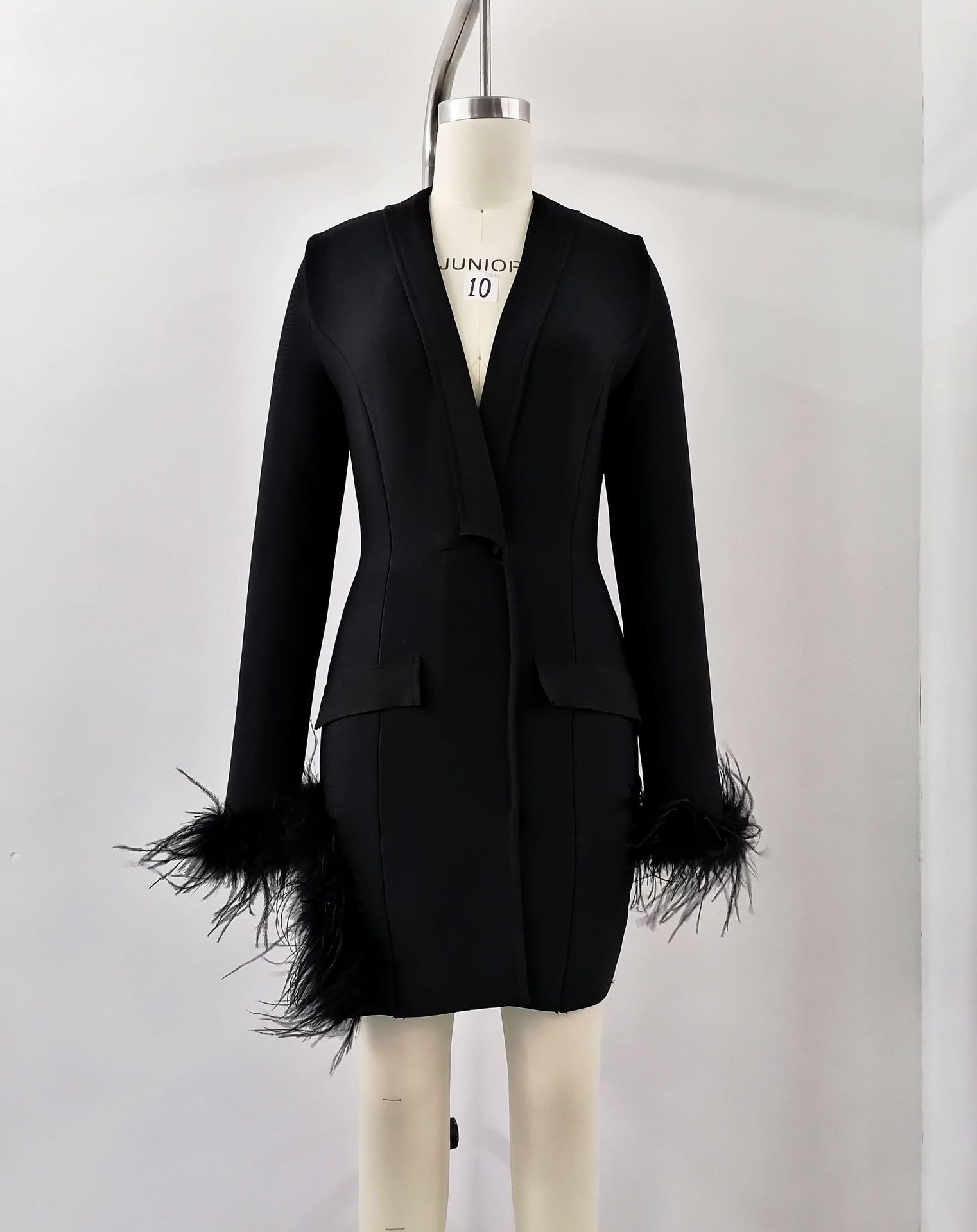 Long Sleeve Ostrich Feather Deep V Party Slim-Fit Suit Dress