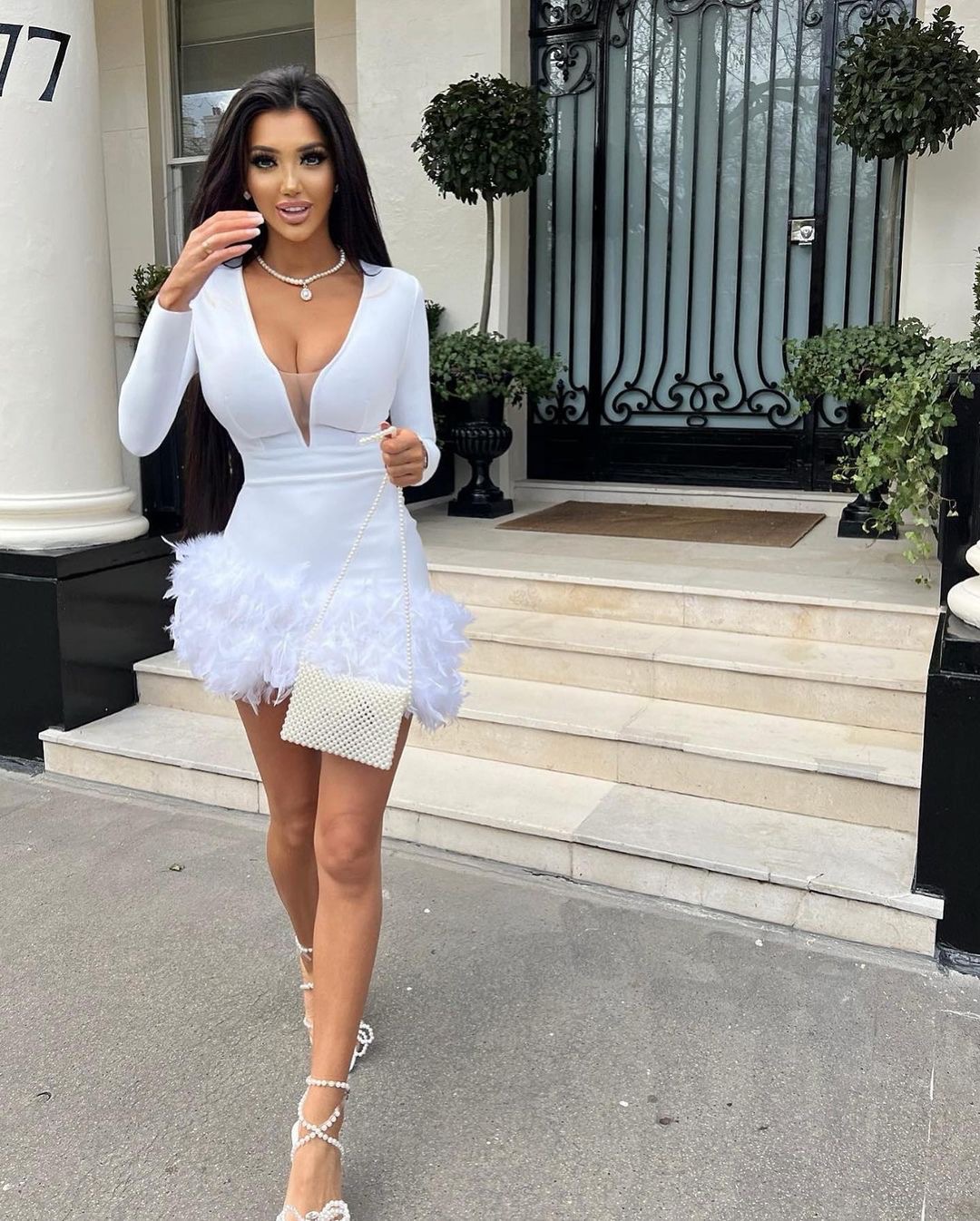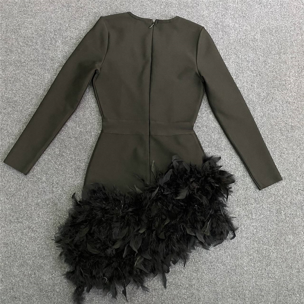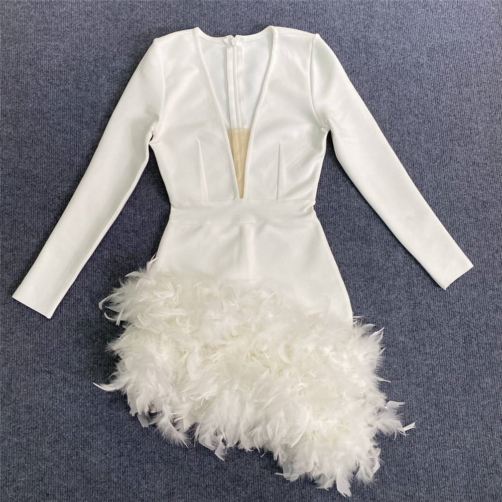 Long Sleeve V-Neck Dress Sexy Feather Party Dresses