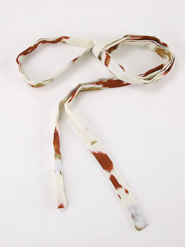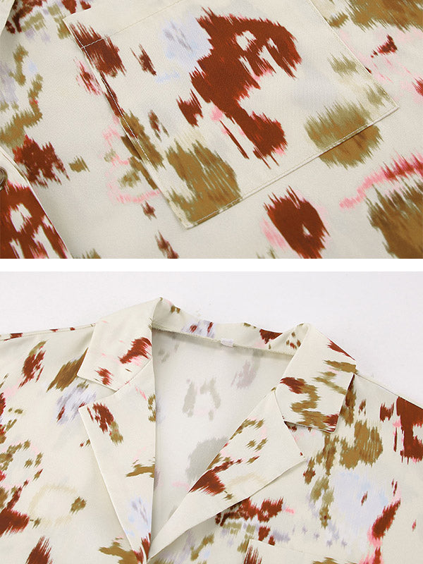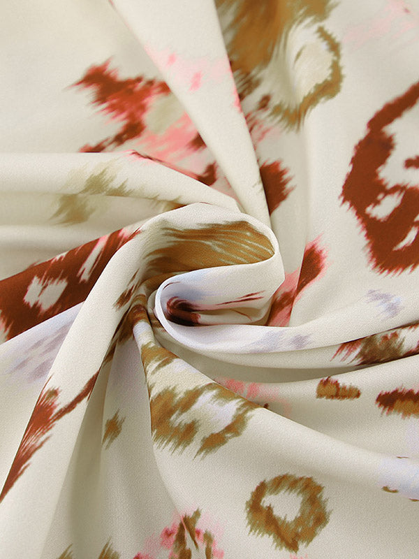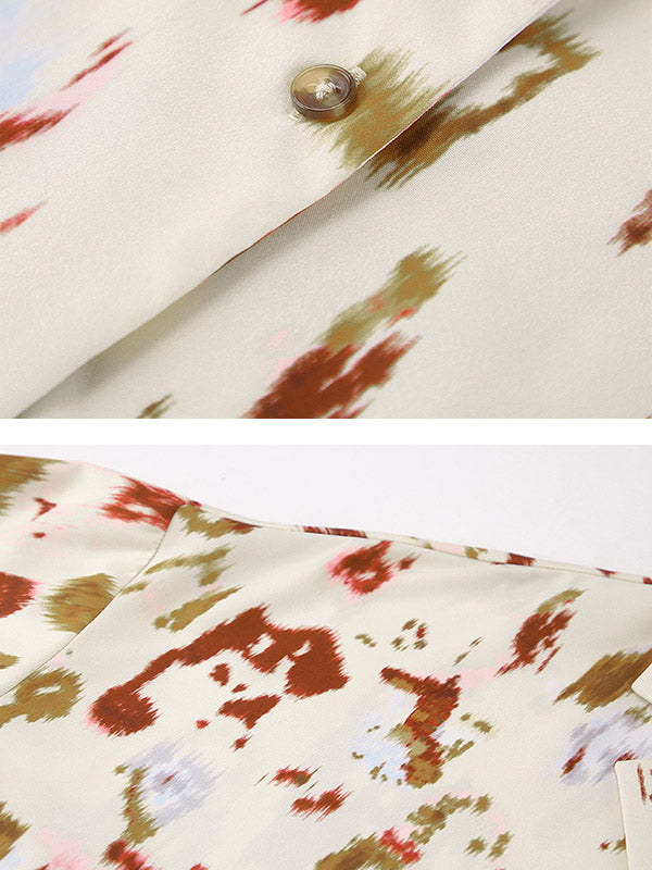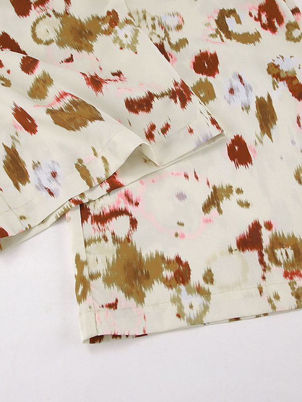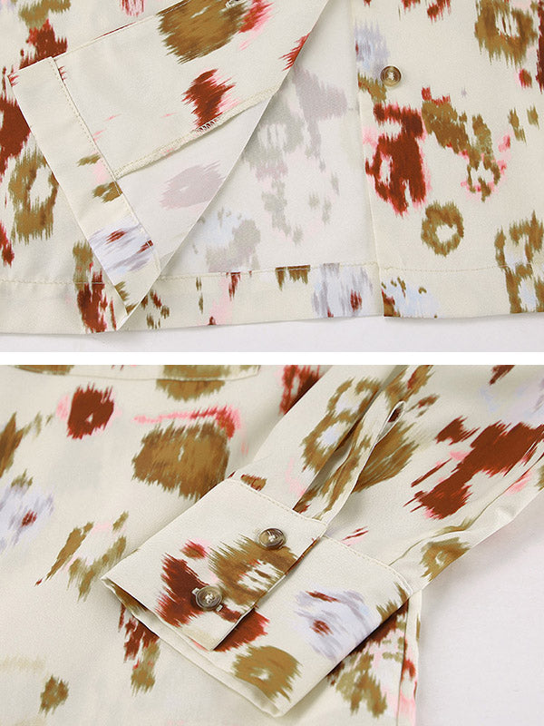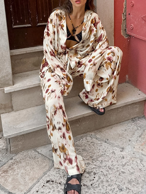 Long Sleeves Lace-Up Printed Lapel Blouse + High Waisted Elasticity Pants Two Pieces Set