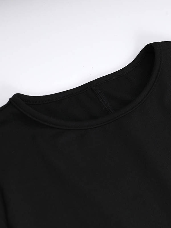 Long Sleeves Loose Asymmetric Solid Color Split-Joint Split-Side Round-Neck Maxi Dresses