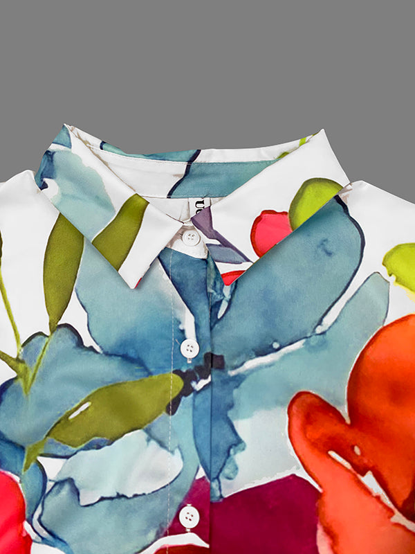 Long Sleeves Loose Buttoned Flower Print Lapel Maxi Dresses Shirt Dress