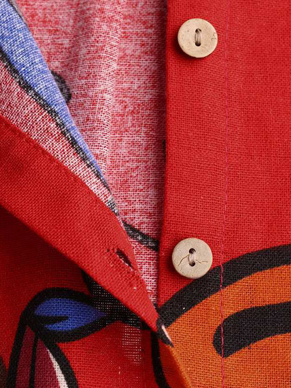 Long Sleeves Loose Buttoned Pockets Printed Lapel Maxi Dresses Shirt Dress