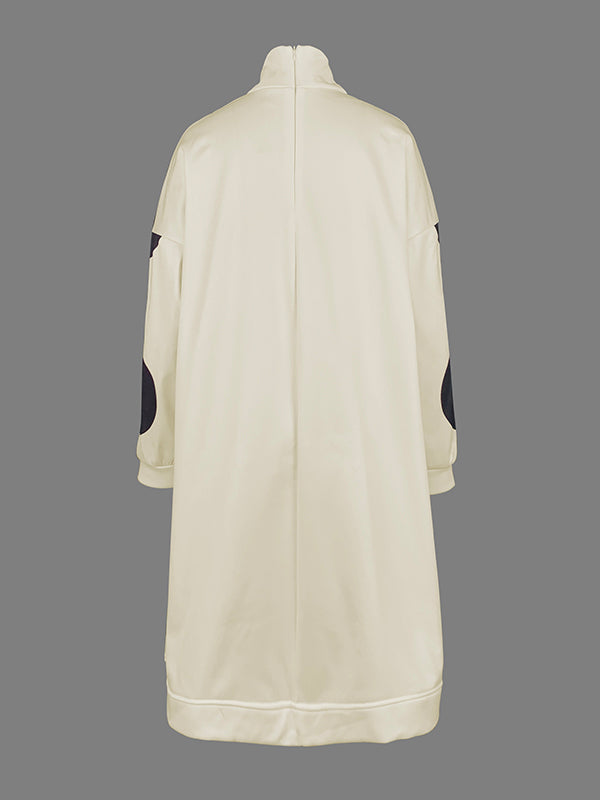 Long Sleeves Loose Pockets Polka-Dot Mock Neck Midi Dresses