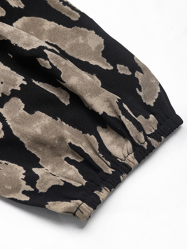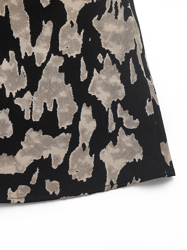 Long Sleeves Loose Printed Split-Joint Tied Waist Lapel Midi Dresses Shirt Dress