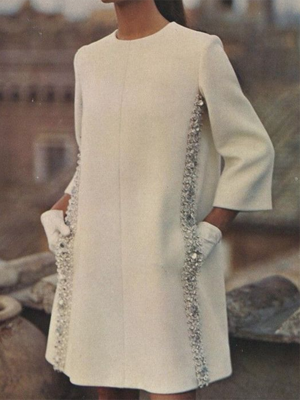 Long Sleeves Loose Sequined Solid Color Round-neck Mini Dresses