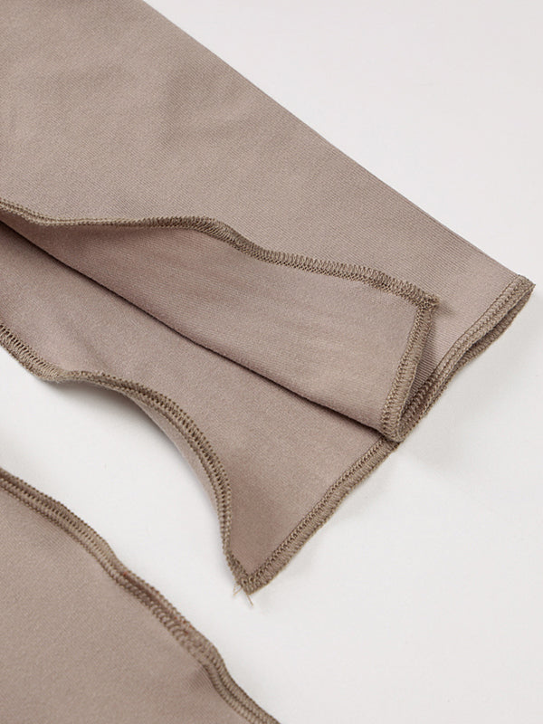 Long Sleeves Plus Size Solid Color Split-Joint Hooded Maxi Dresses