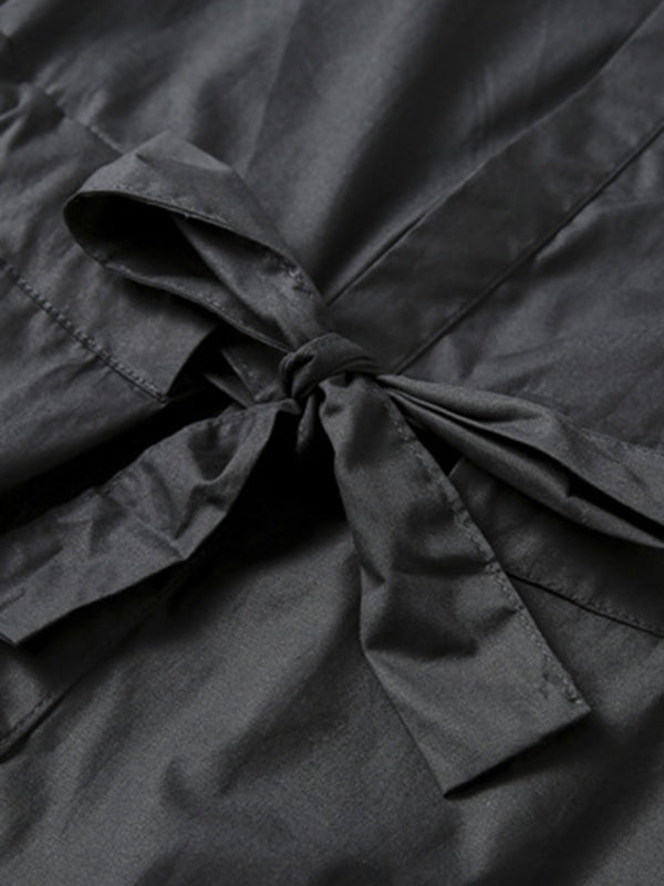 Loose Short Sleeves Contrast Color Drawstring Printed Tied Waist Lapel Midi Dresses Shirt Dress