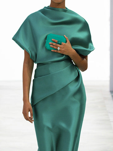 Loose Short Sleeves Pleated Solid Color Maxi Dresses