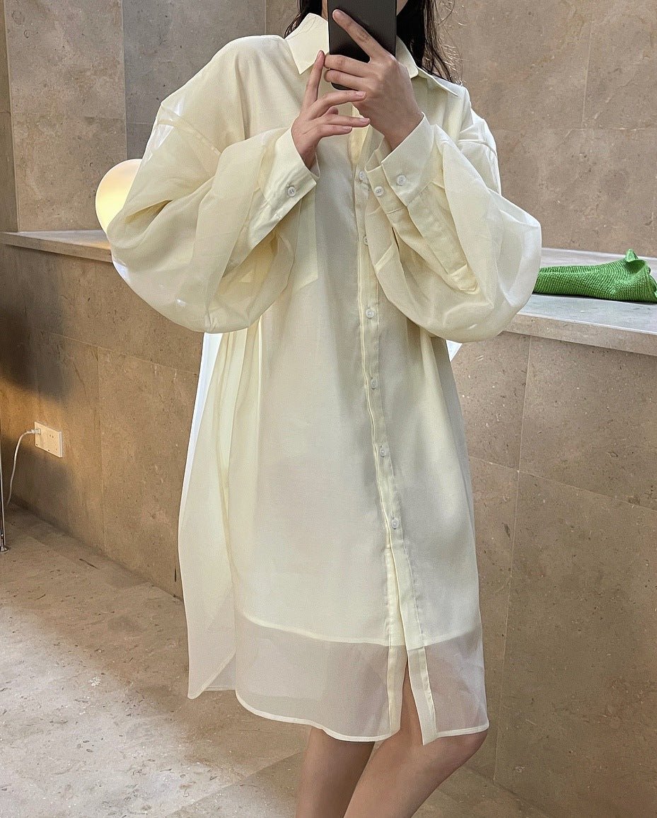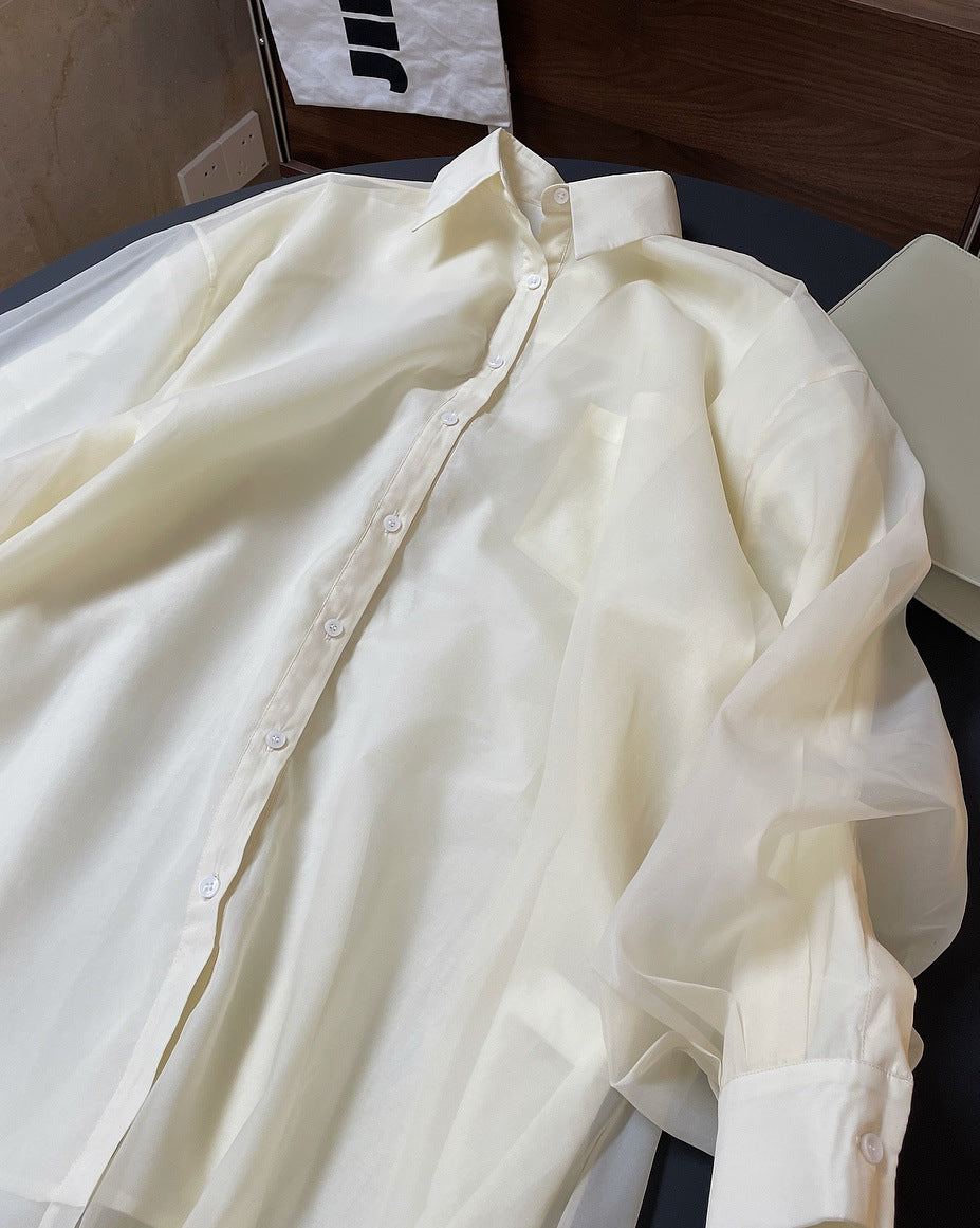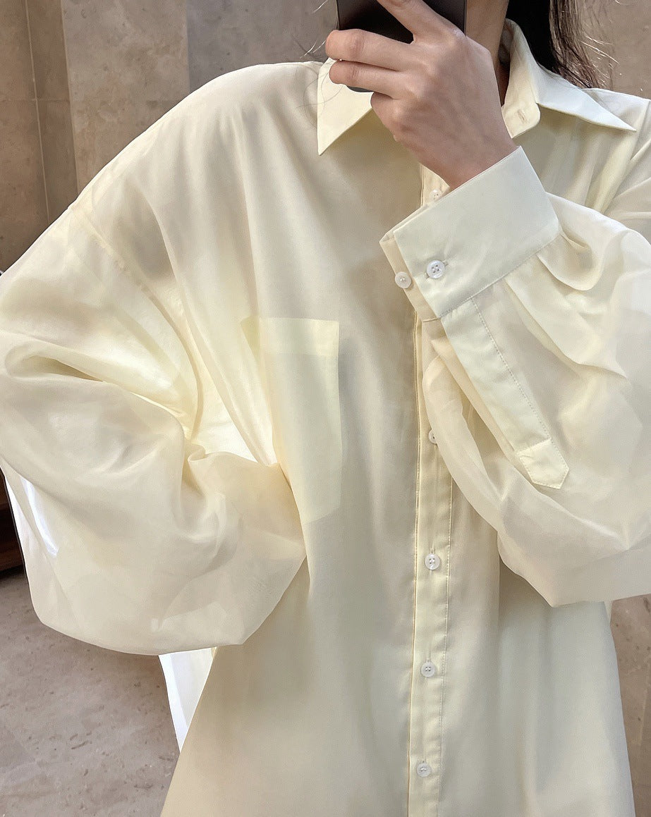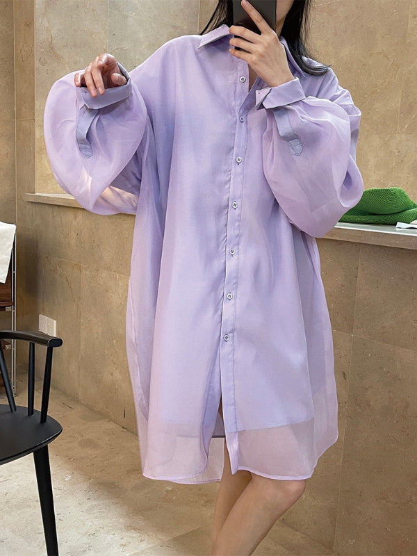 Loose Solid Color Lapel Long Sleeve Shirt