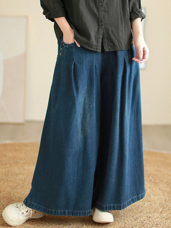 Loose Wide Pants Elasticity Pleated Flared Trousers Jean Pants Bottoms