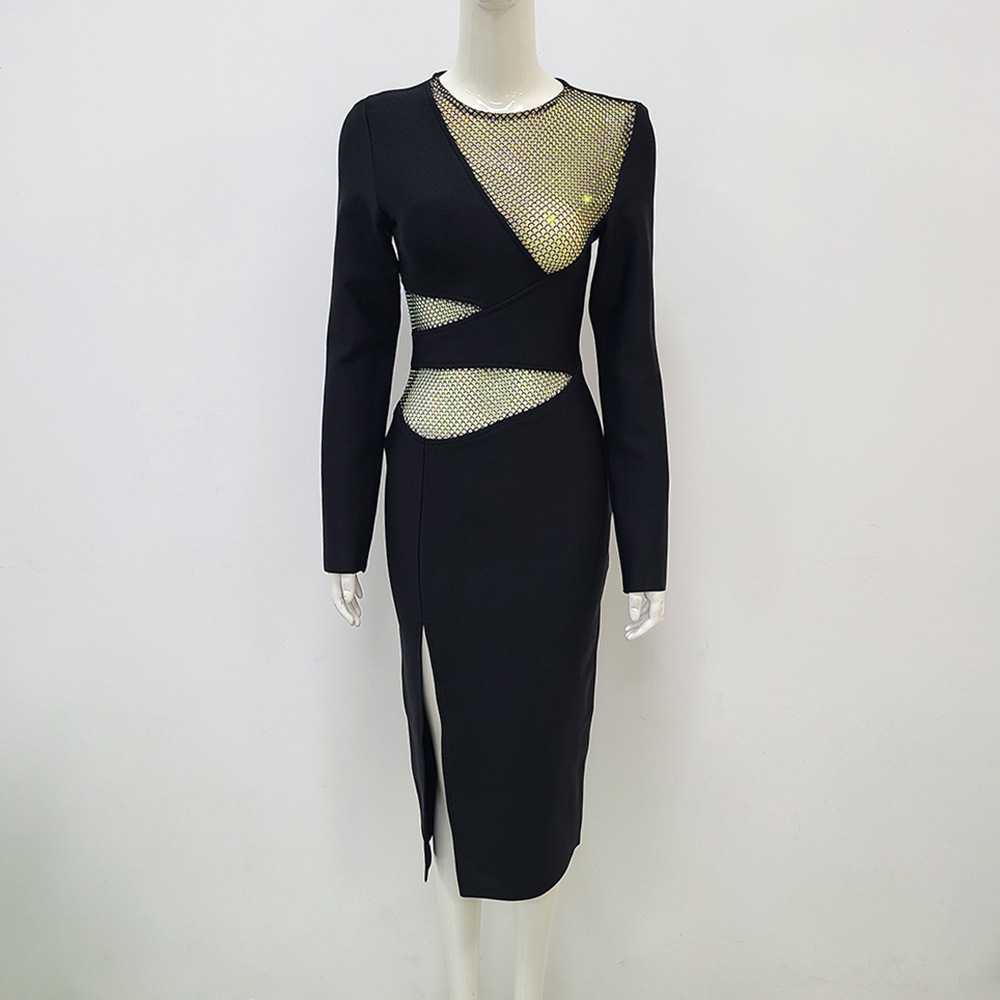 Mesh Light Diamond Sexy Bandage Evening Dress Party Banquet