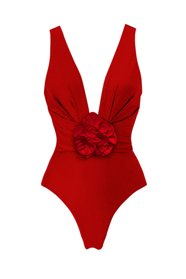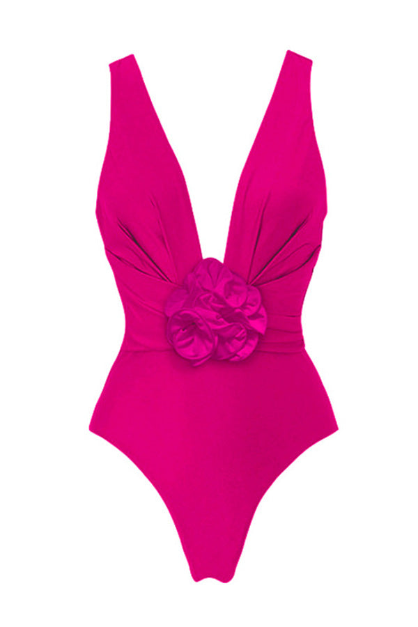 Stay on trend this season in our new beachy. deep v neck one piece. We especially love the solid color fabric and think this piece will be a new favorite in your closet!