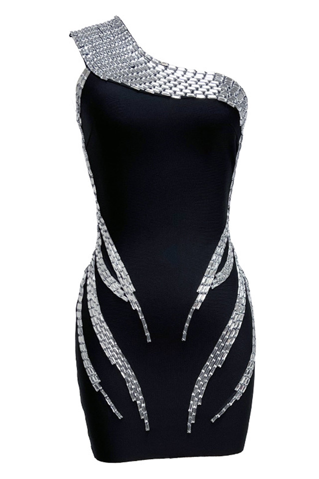 Featuring rhinestone trim. Milana One Shoulder Mini Dress adds a touch of allure and sophistication to your look and highlights your figure. giving you a slimming and captivating silhouette. Be the epitome of grace and confidence as you don this elegant dress. perfect for various occasions like parties and gatherings.