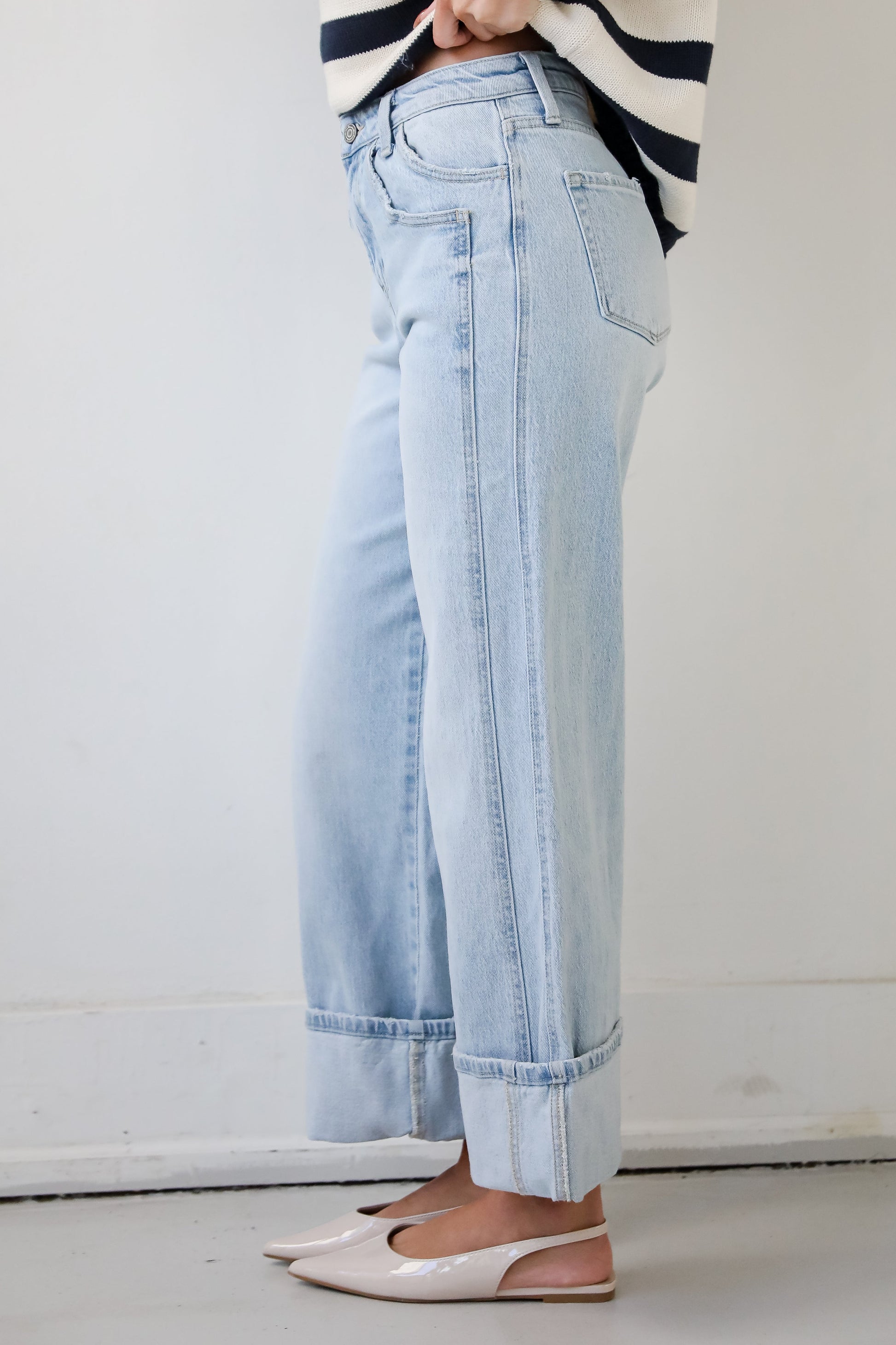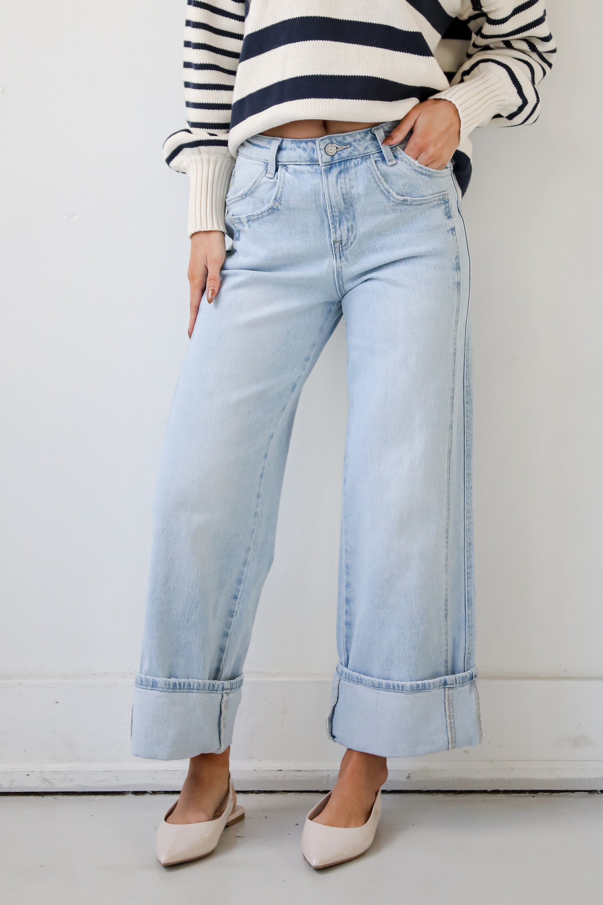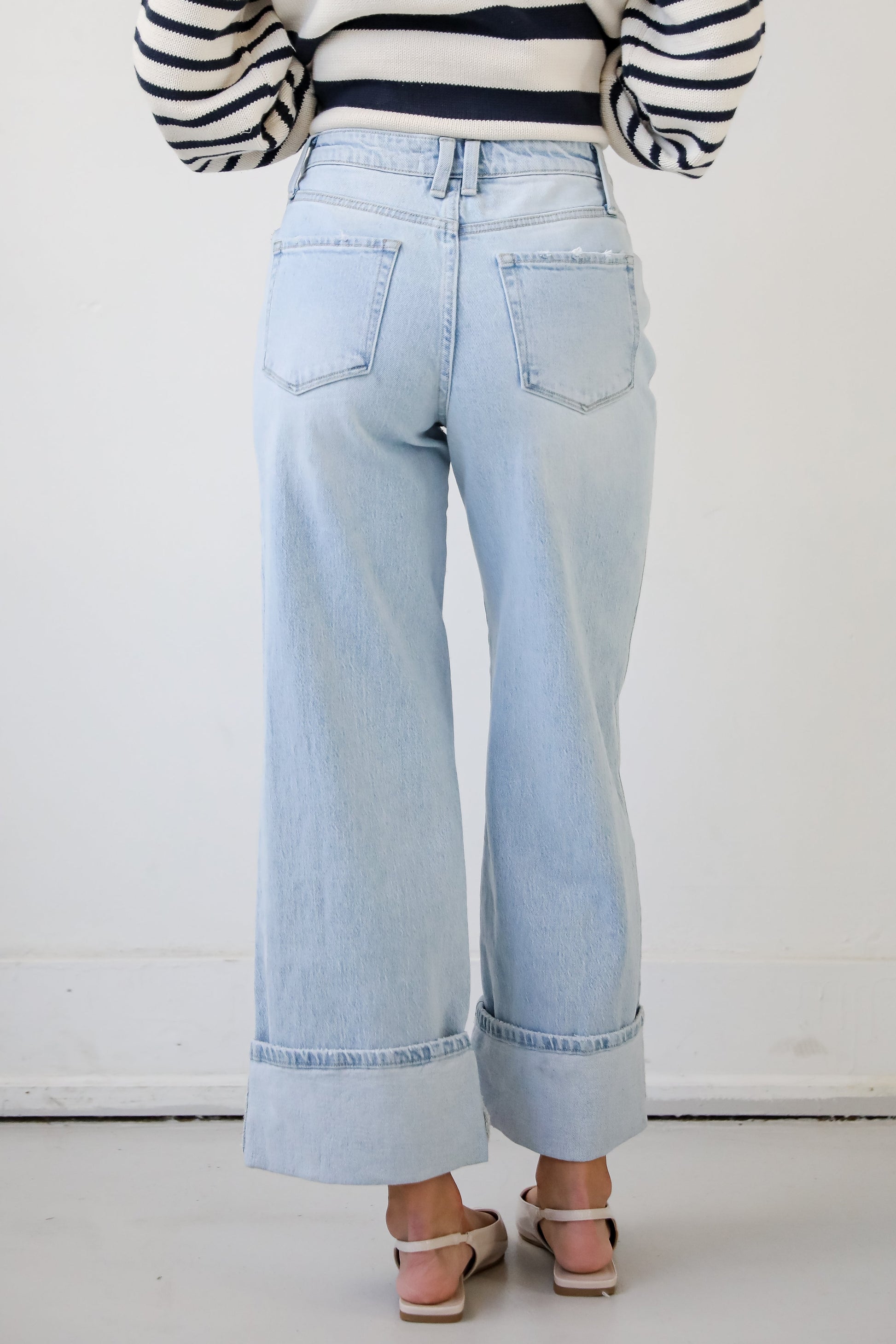 Embrace comfort and style with the Kris Light Wash Super High Rise Cuffed Baggy Jeans! The light wash gives them a fresh. laid-back vibe. perfect for casual days out. Designed with a high-rise fit. these jeans offer a flattering silhouette while providing all-day comfort. The baggy cut creates a relaxed. oversized look. while the cuffed hems add a trendy. laid-back touch. Whether you're pairing them with a tucked-in blouse. cropped top. or casual tee. these jeans are a versatile and chic addition to any wardrobe. offering the perfect blend of comfort and effortless style!