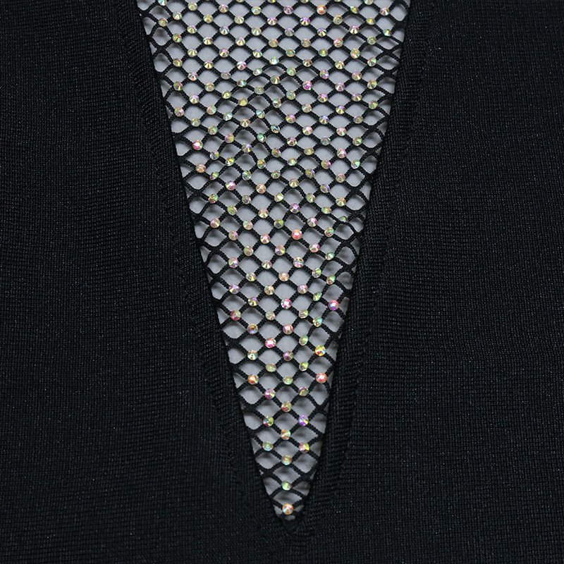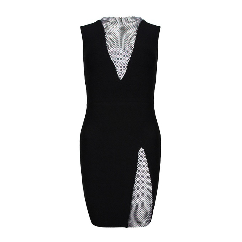 Net Drill V-Neck Sexy Sleeveless See-Through Slim Bandage Dress