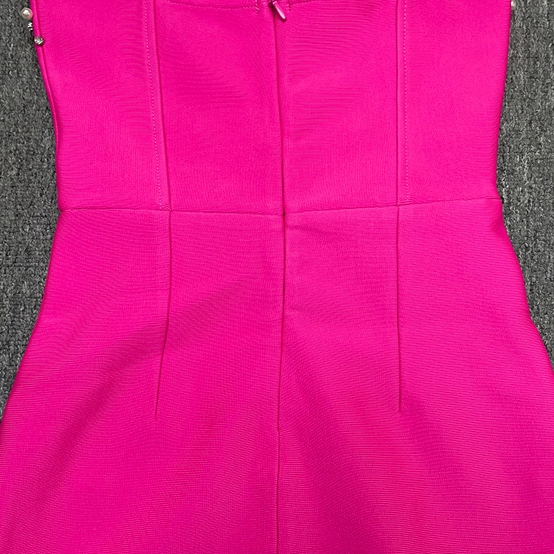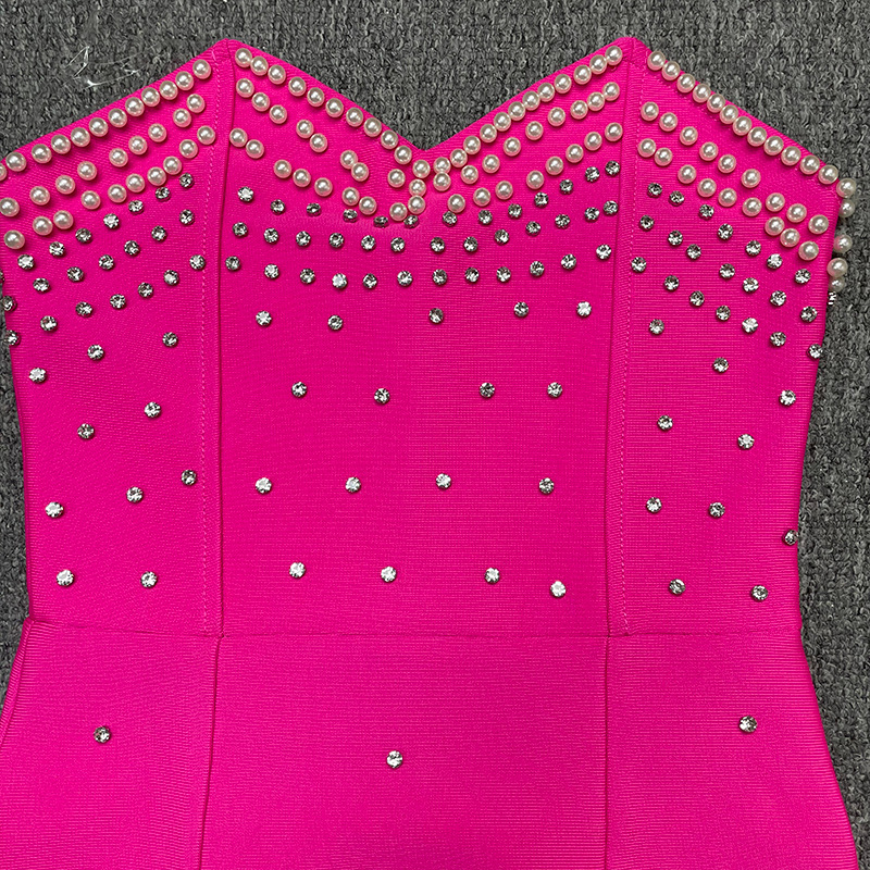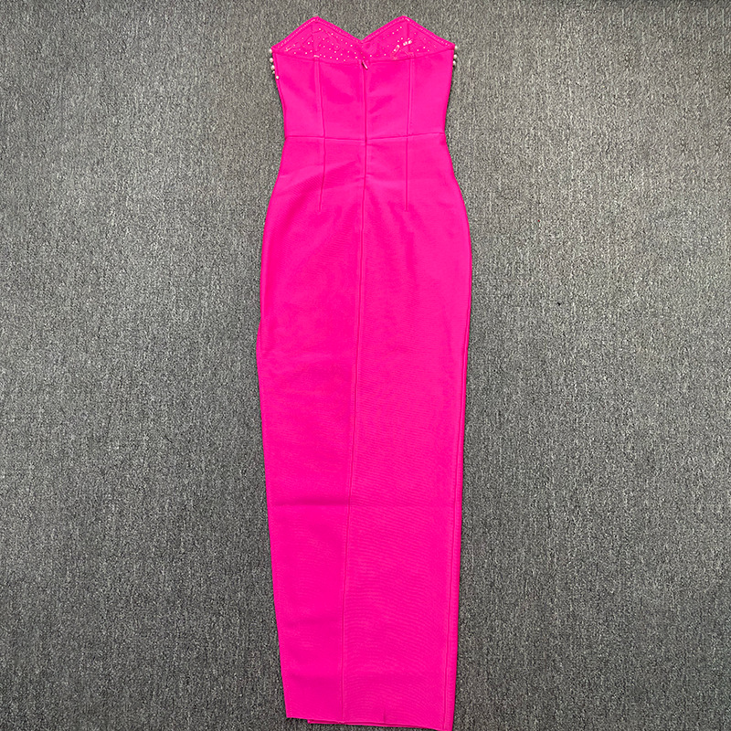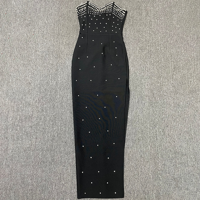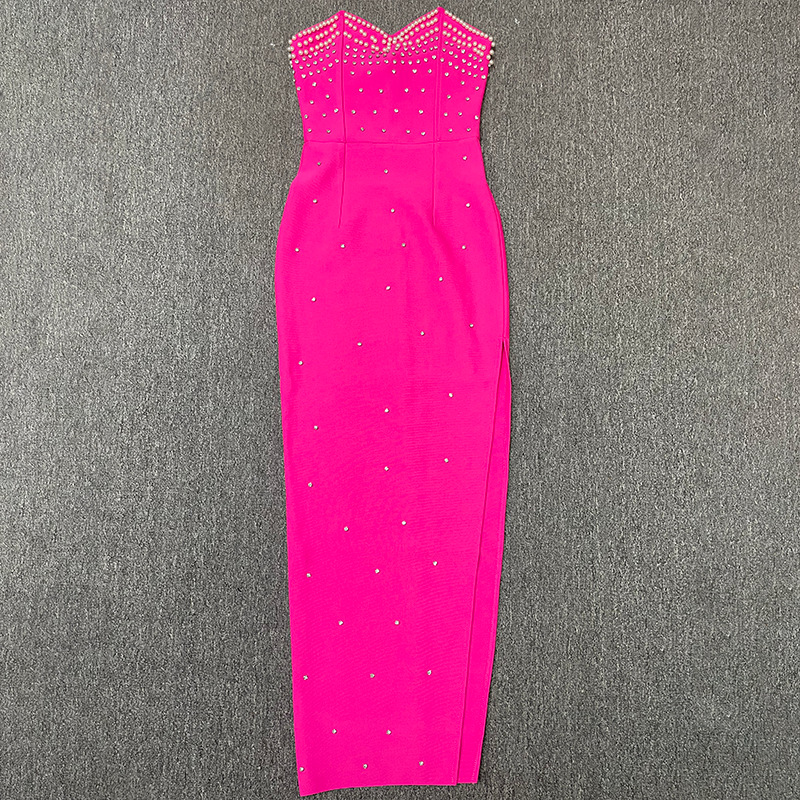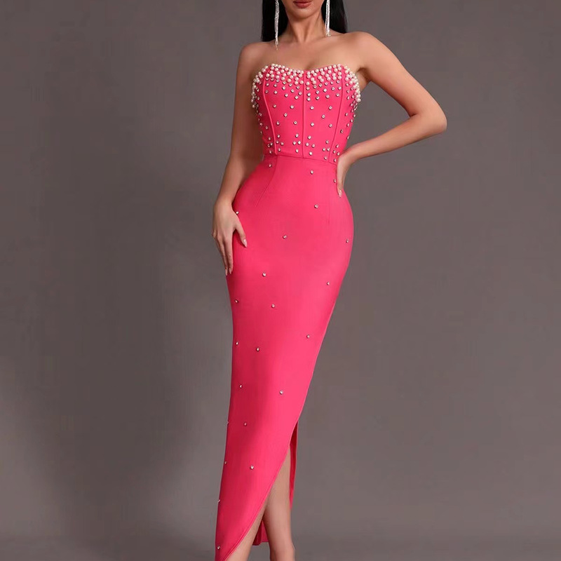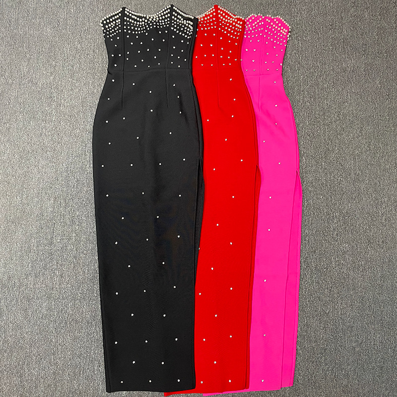 New bandage women's sexy tube top sleeveless beaded edge split waist fitted elegant graceful bandage one-piece dress