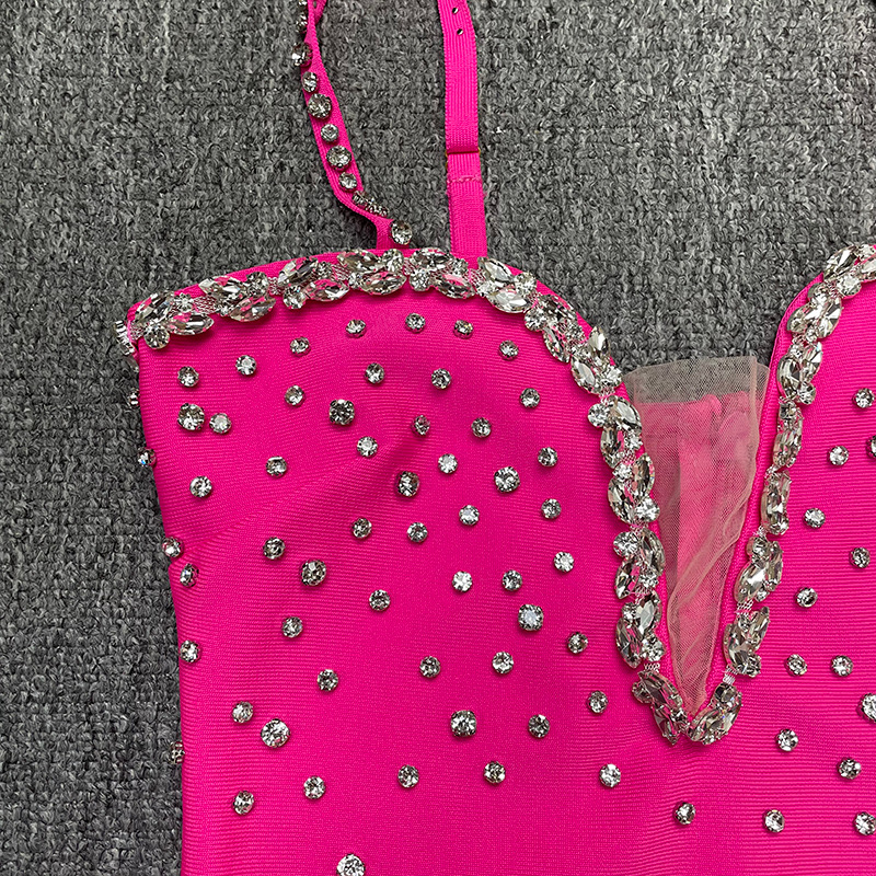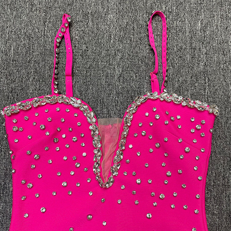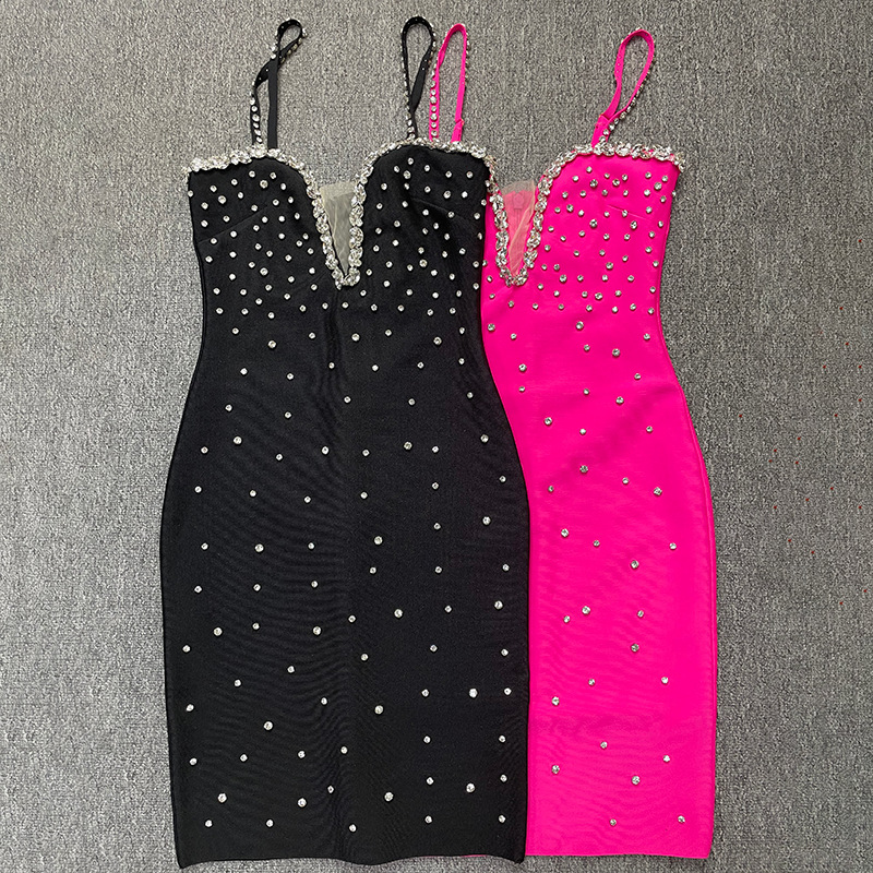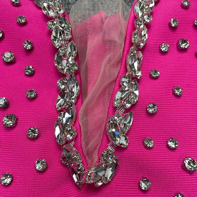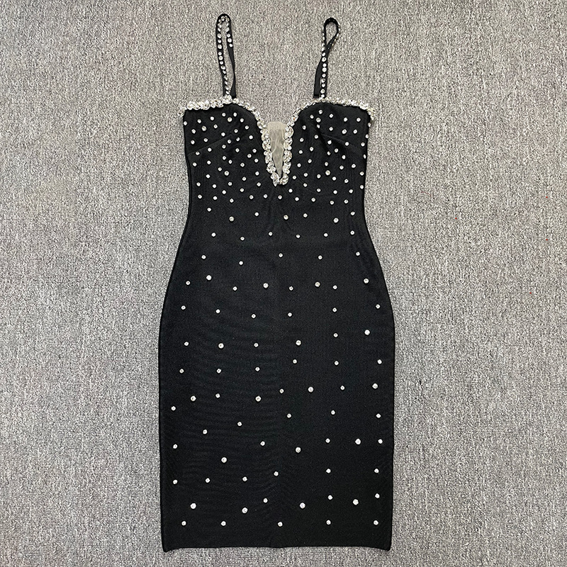 New bandage women's sexy V-neck brace a crystal Starry Sky waist-tight temperament bandage one-piece dress evening dress