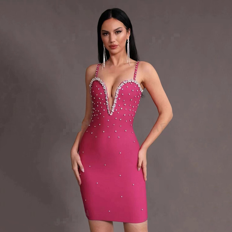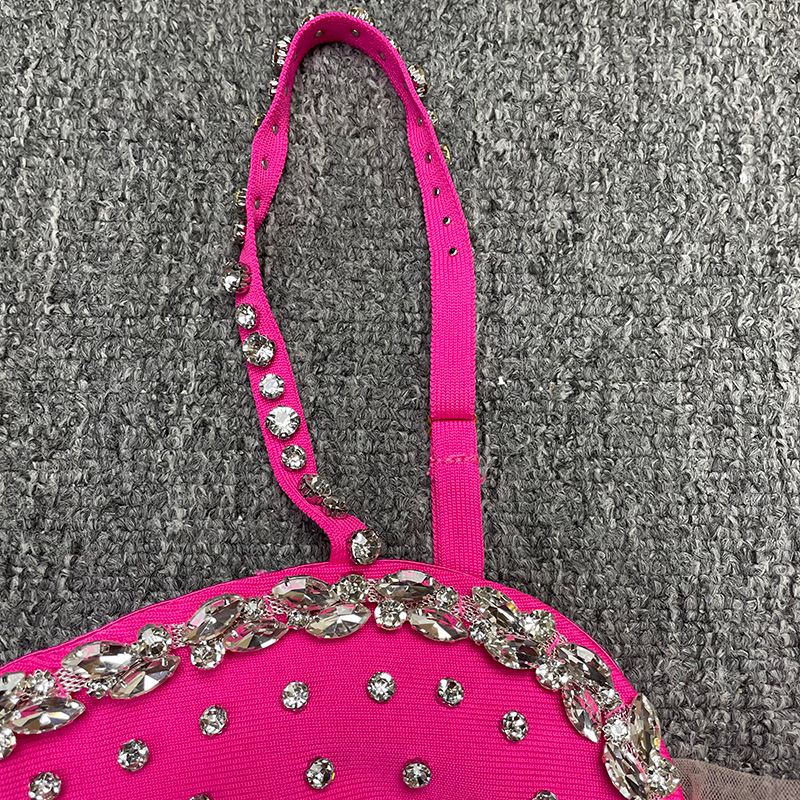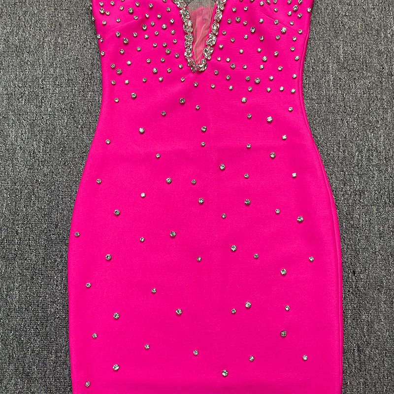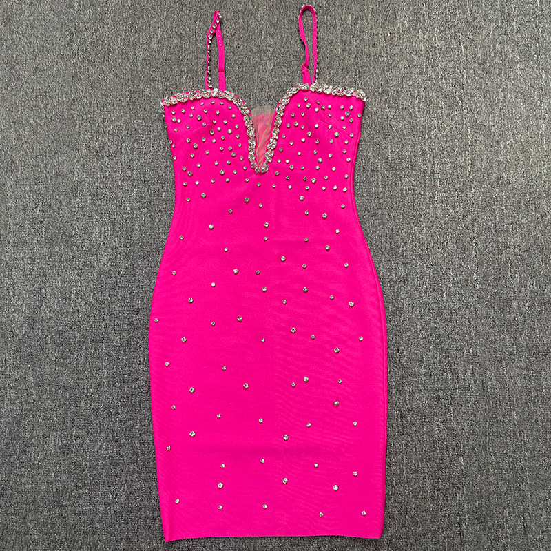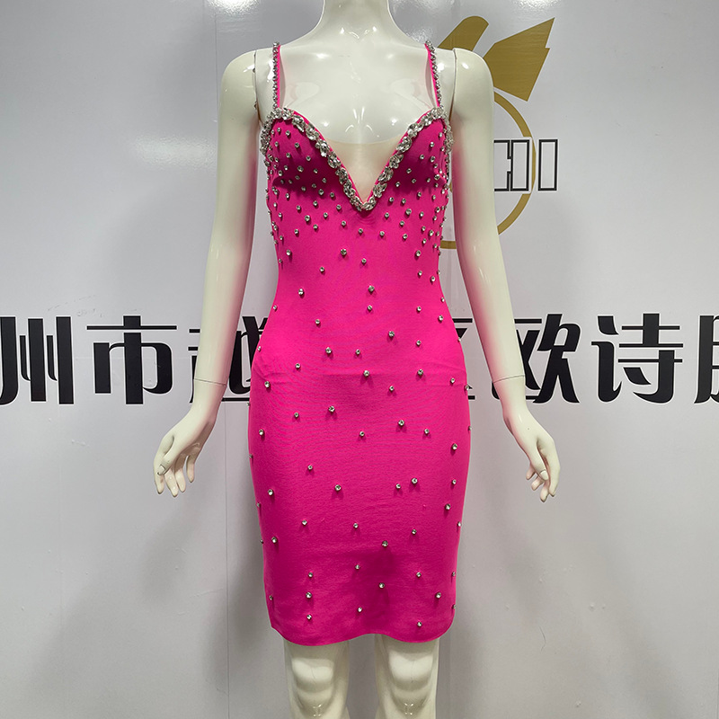 New bandage women's sexy V-neck brace a crystal Starry Sky waist-tight temperament bandage one-piece dress evening dress
