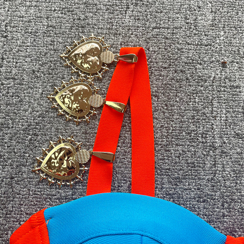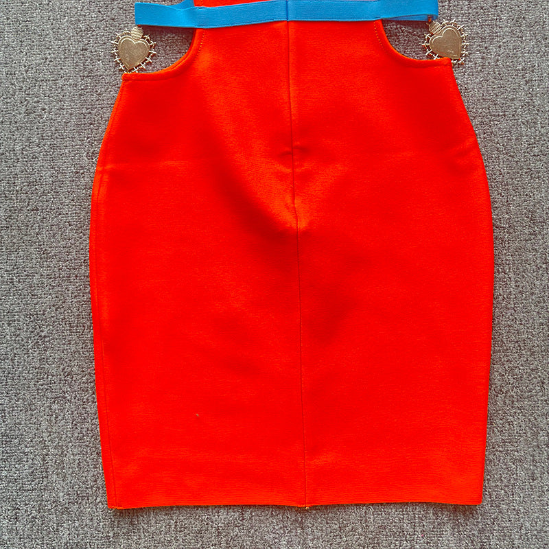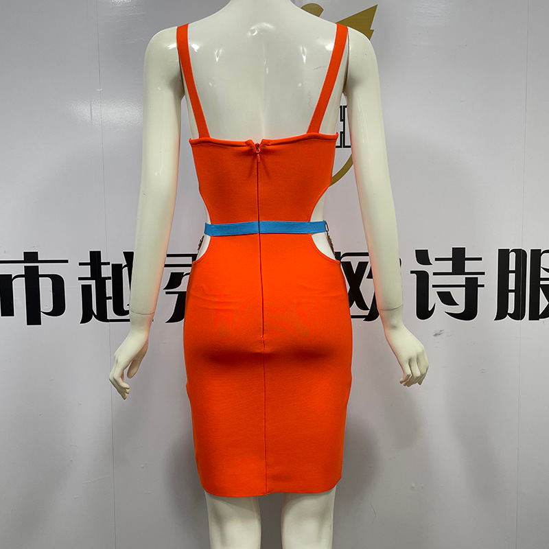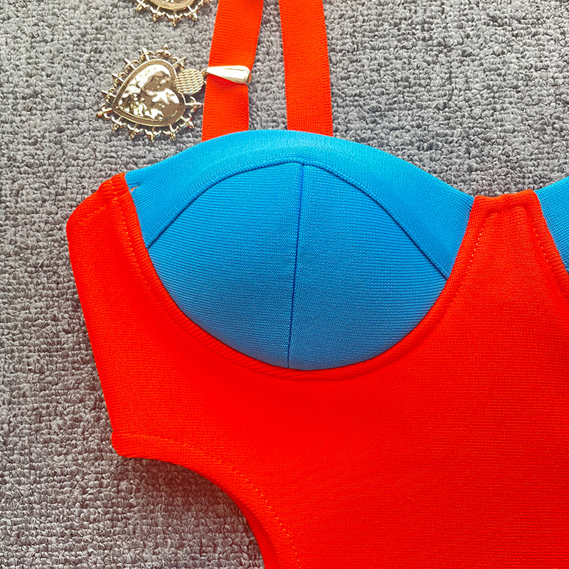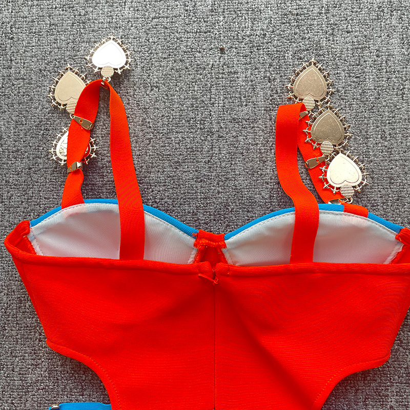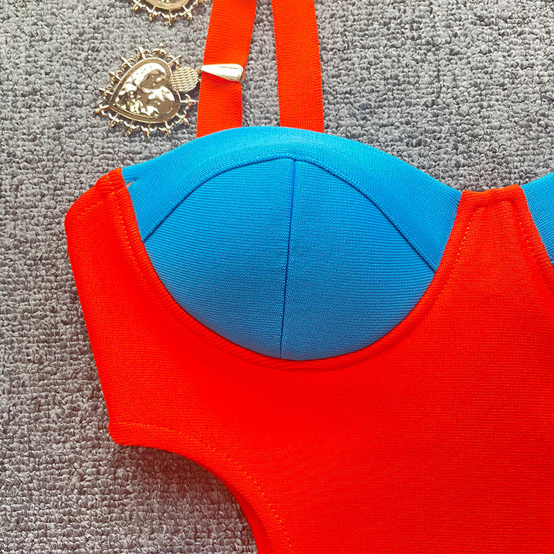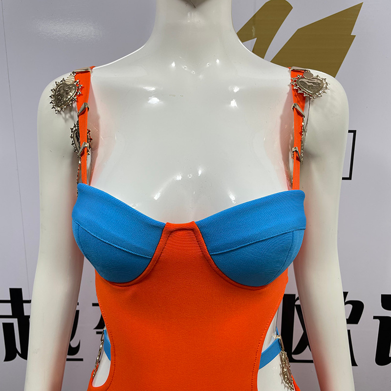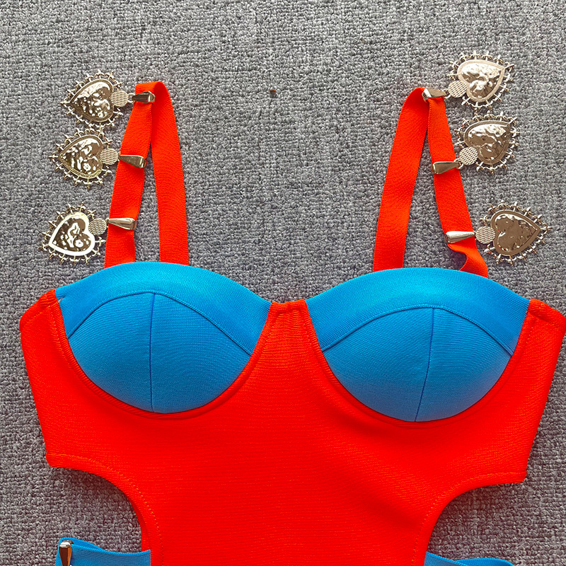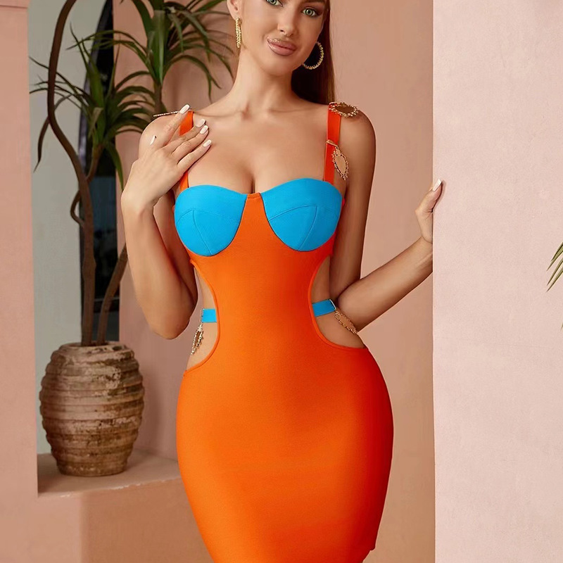 New French contrast color hot girl sexy cutout off-the-shoulder sling bandage one-piece dress