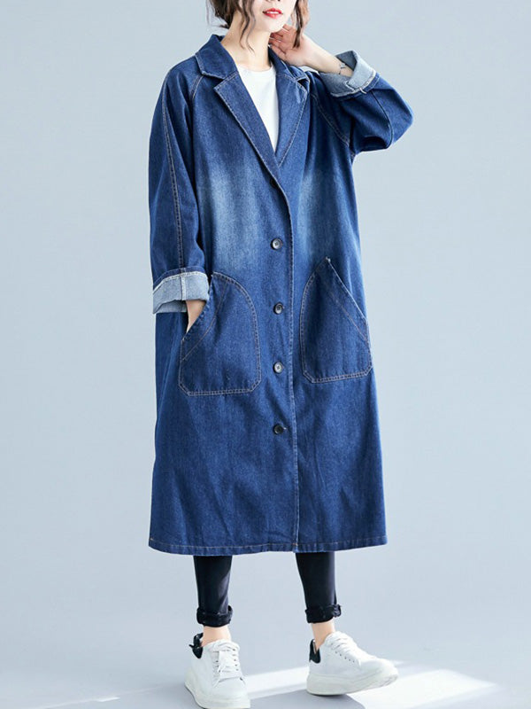 Original Lapel Long Sleeve Denim Outerwear&Trench