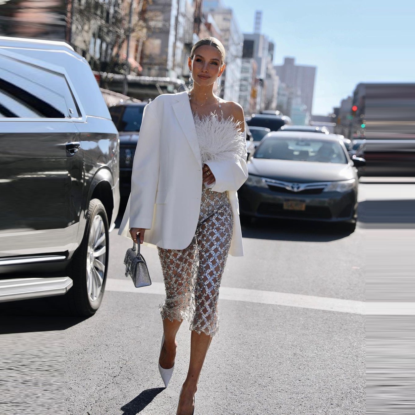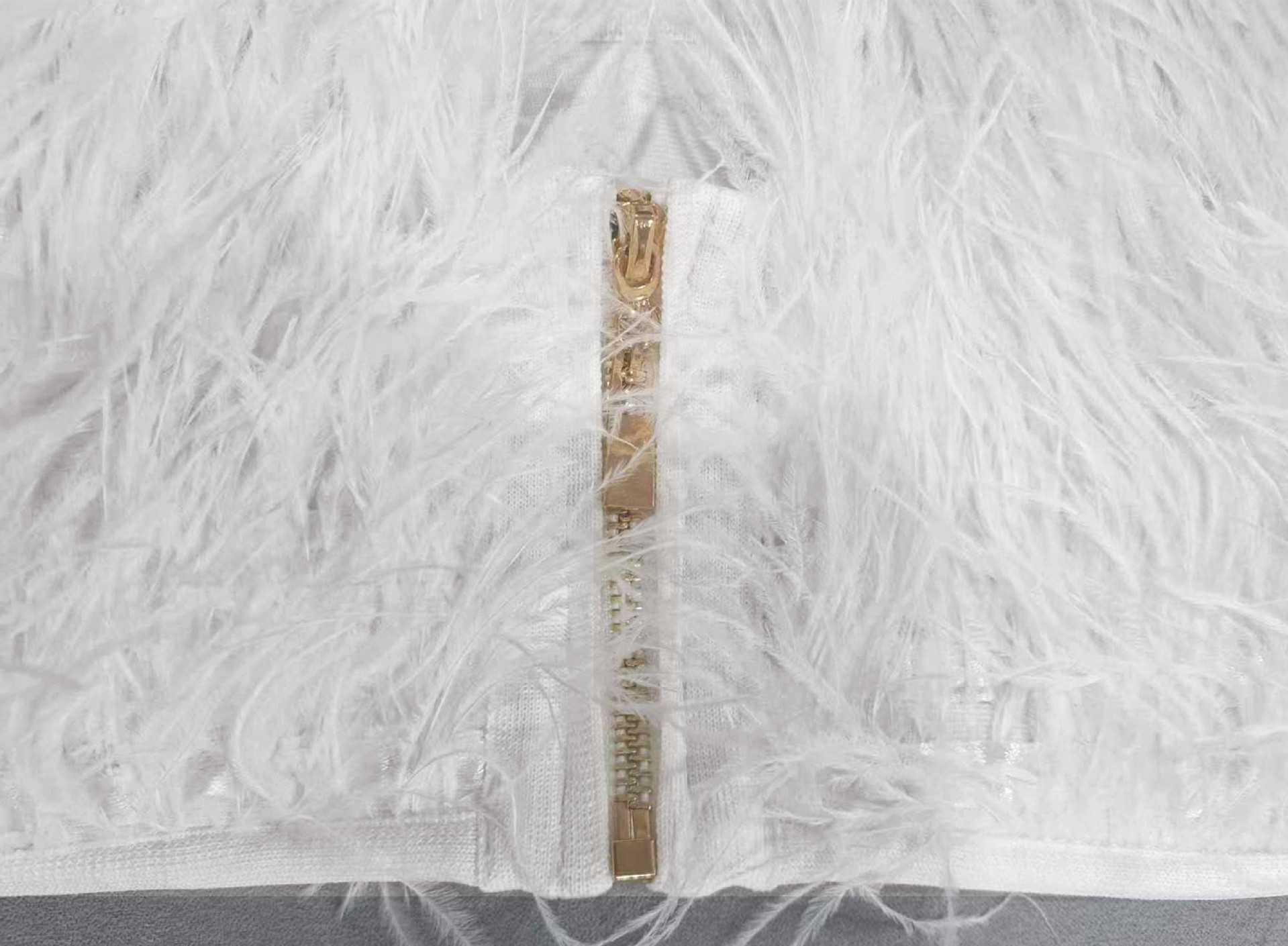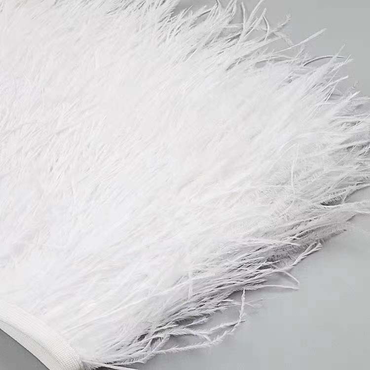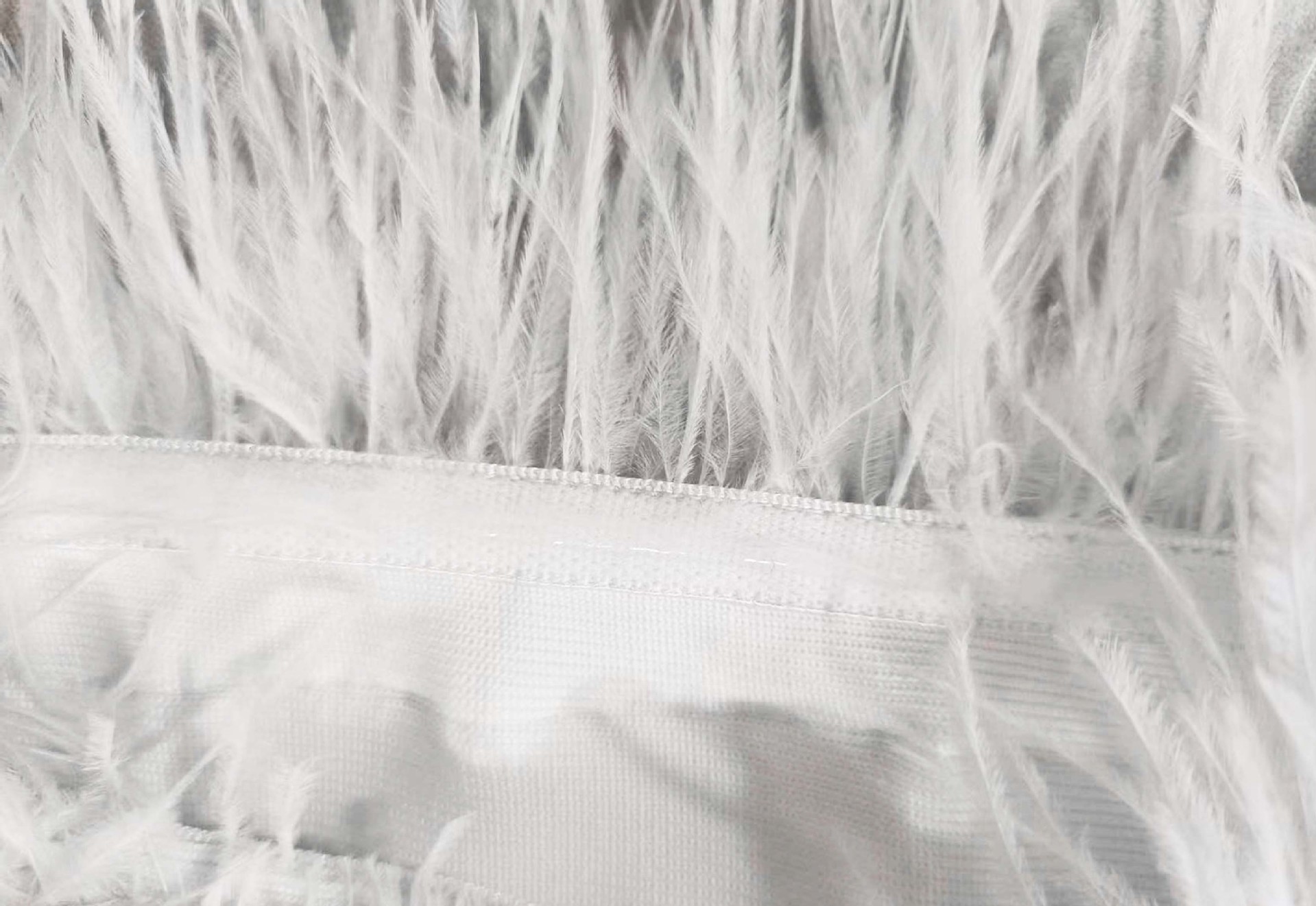 Ostrich Feather Top Silver Mesh Long Dress Suit Women Two-Piece Set