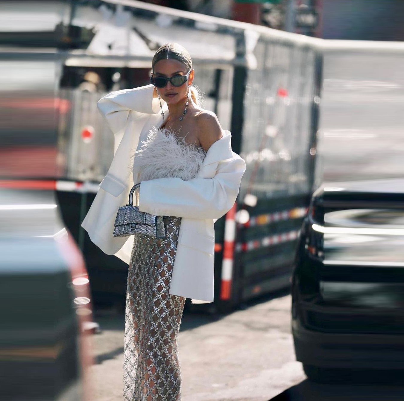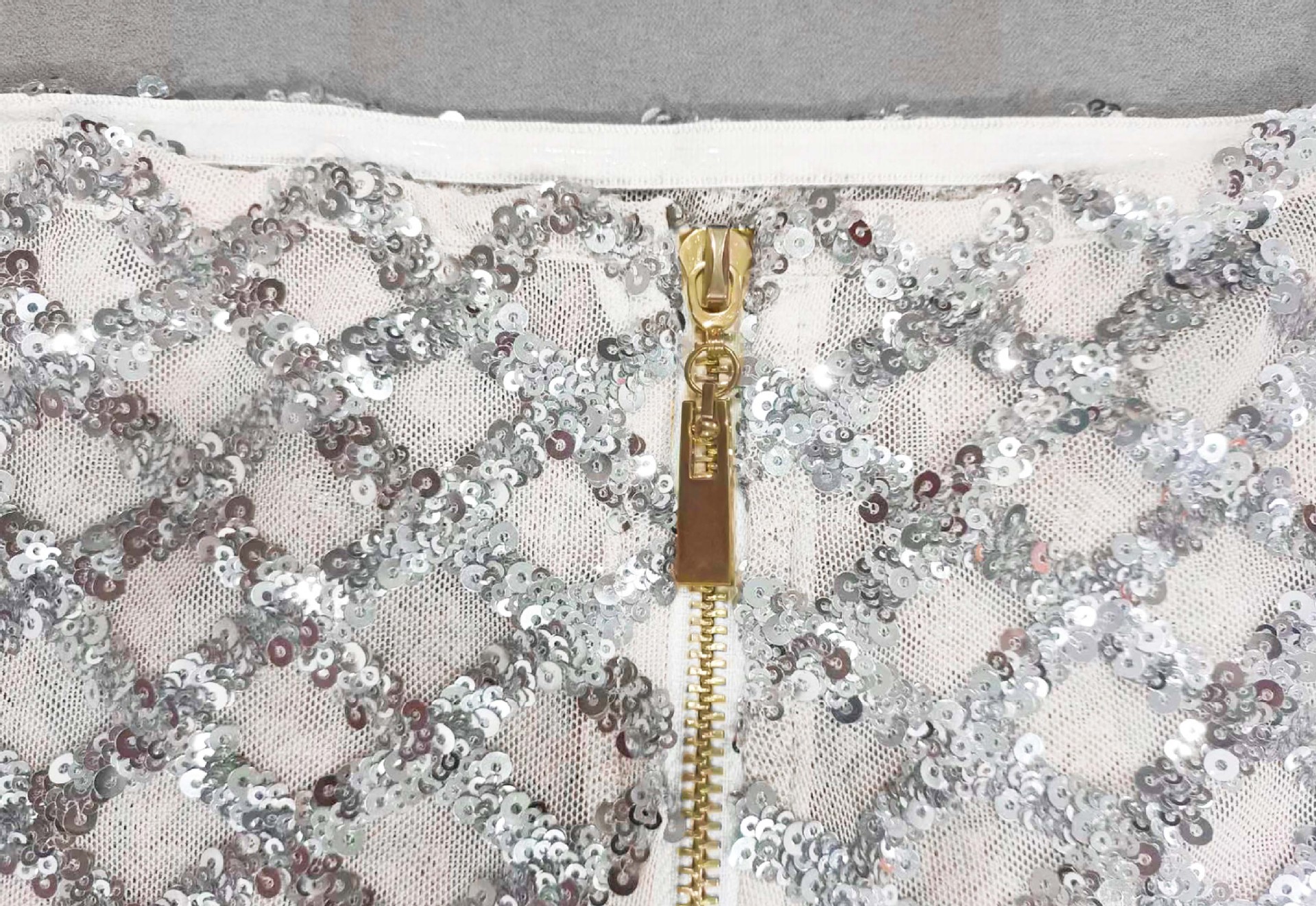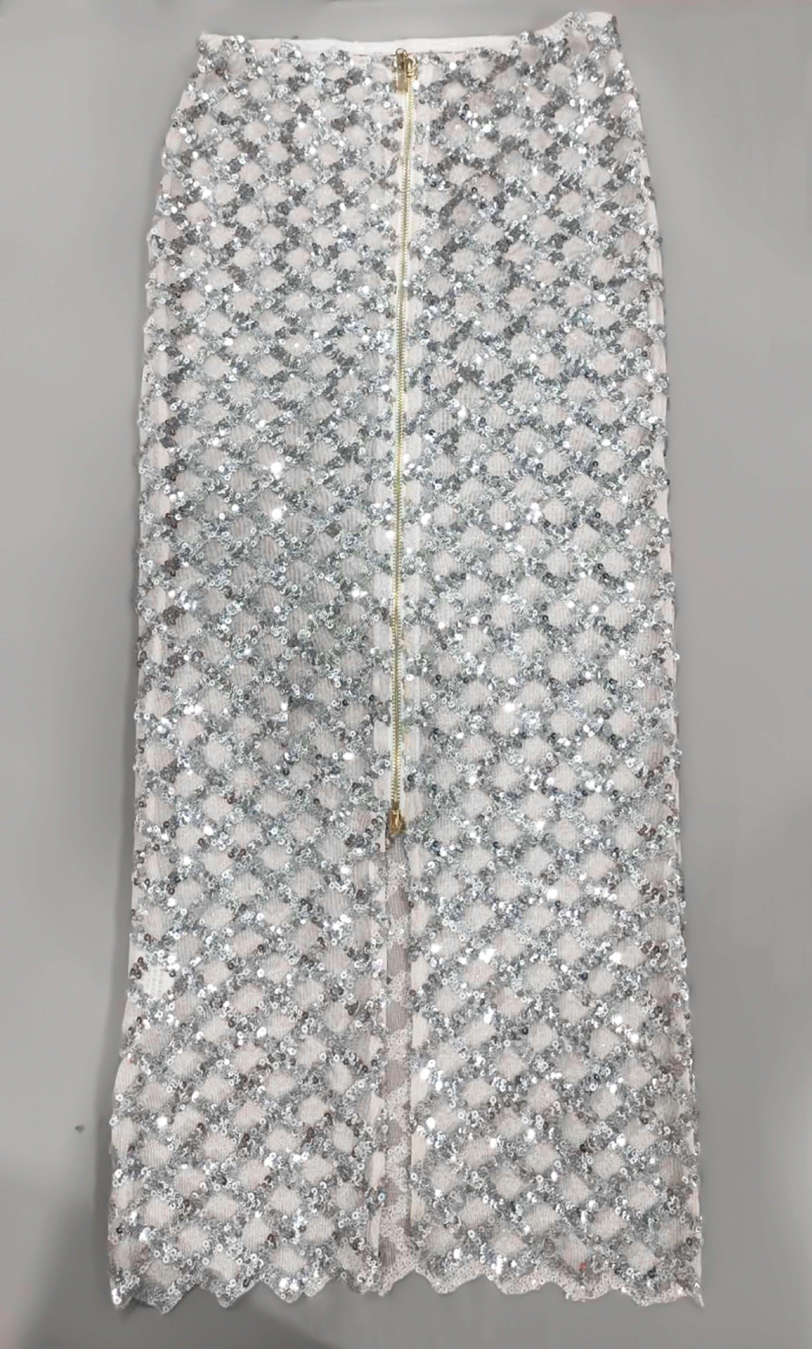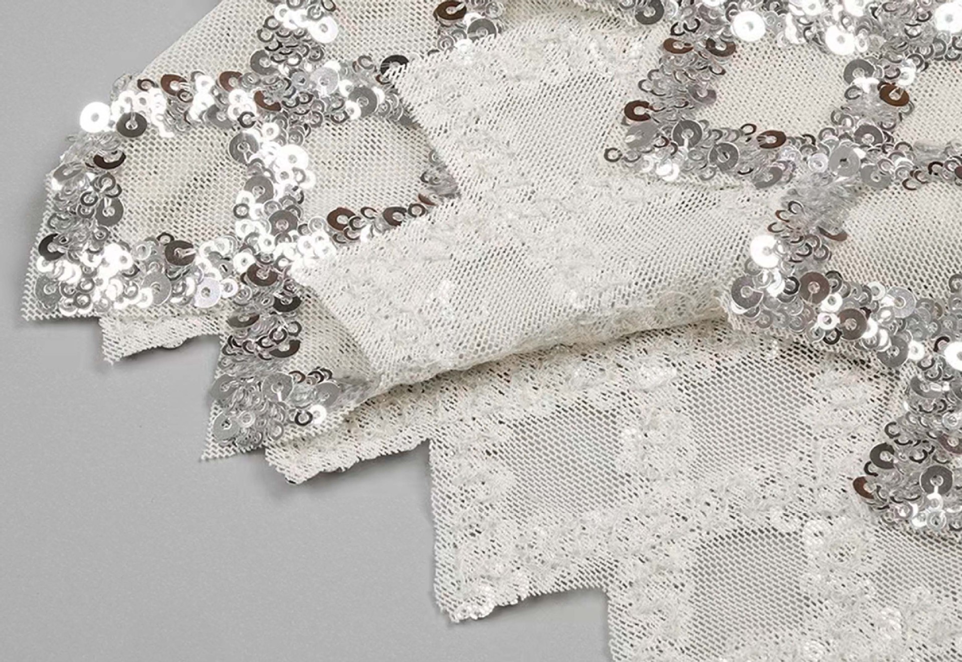Ostrich Feather Top Silver Mesh Long Dress Suit Women Two-Piece Set