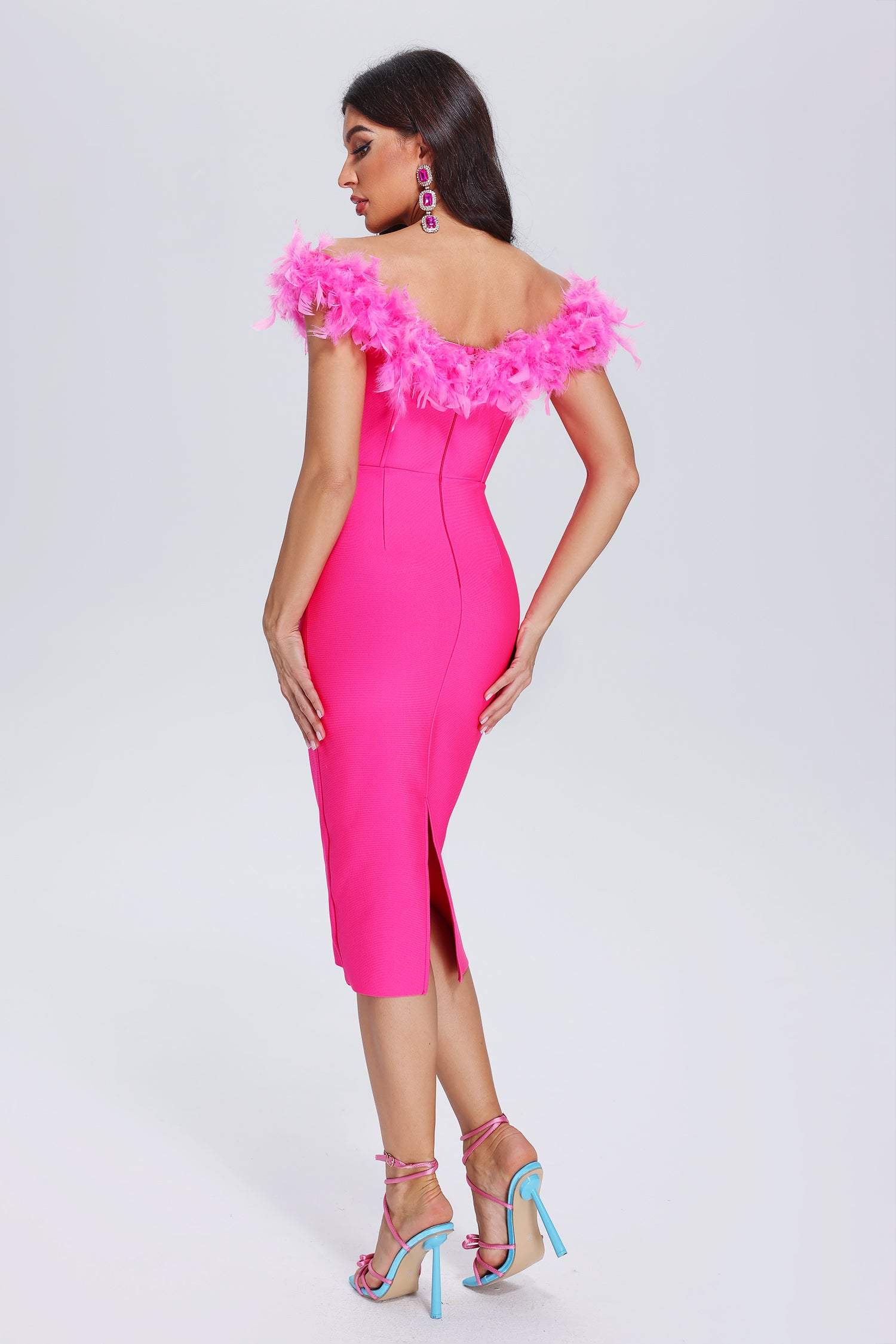 Patent Feather Midi Bandage Dress