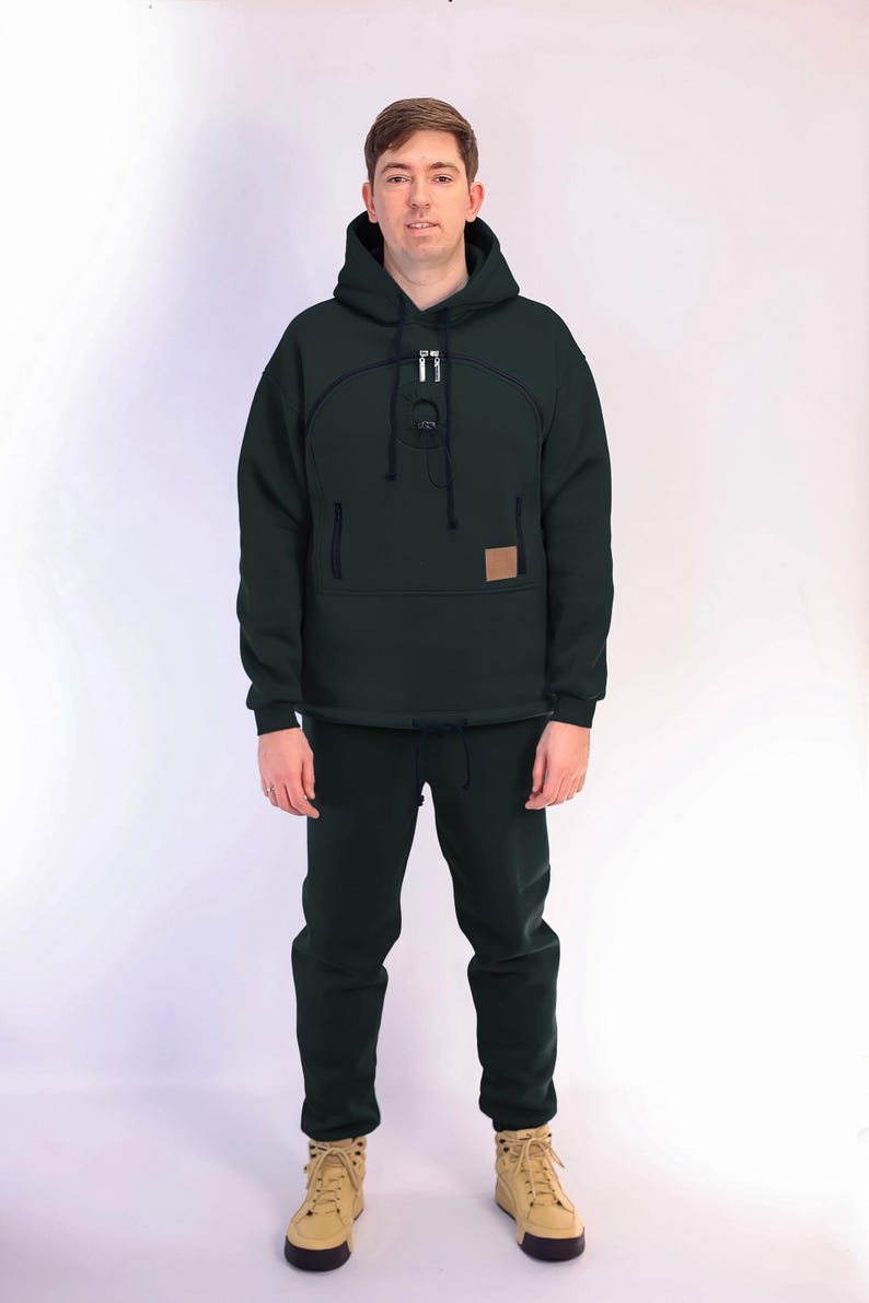 With its built-in pet carrier pocket. this sweatshirt allows you to comfortably carry your furry friend or use the pocket for everyday essentials. It's a great fit for cat lovers. dog owners. and anyone who enjoys cozy wear.
