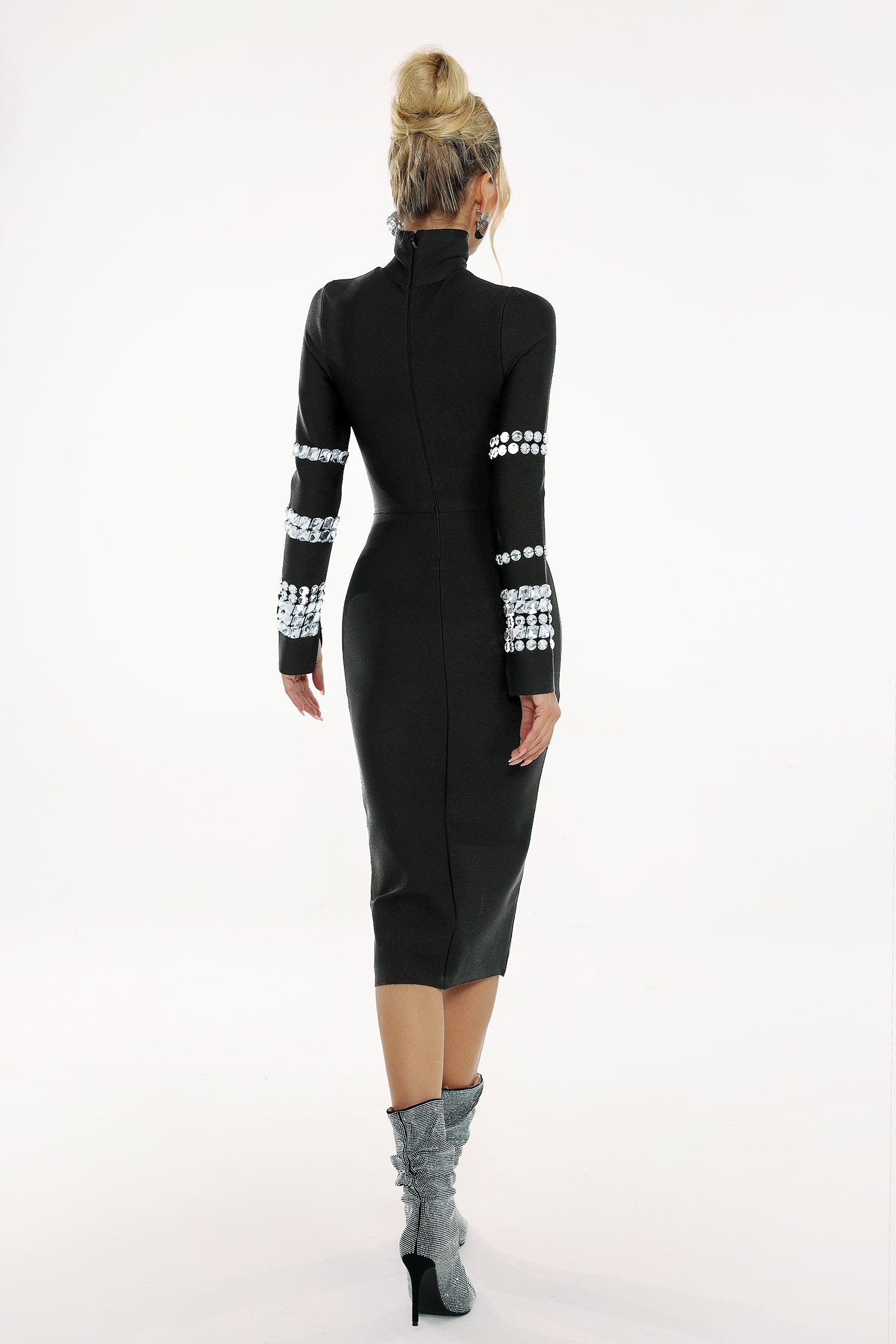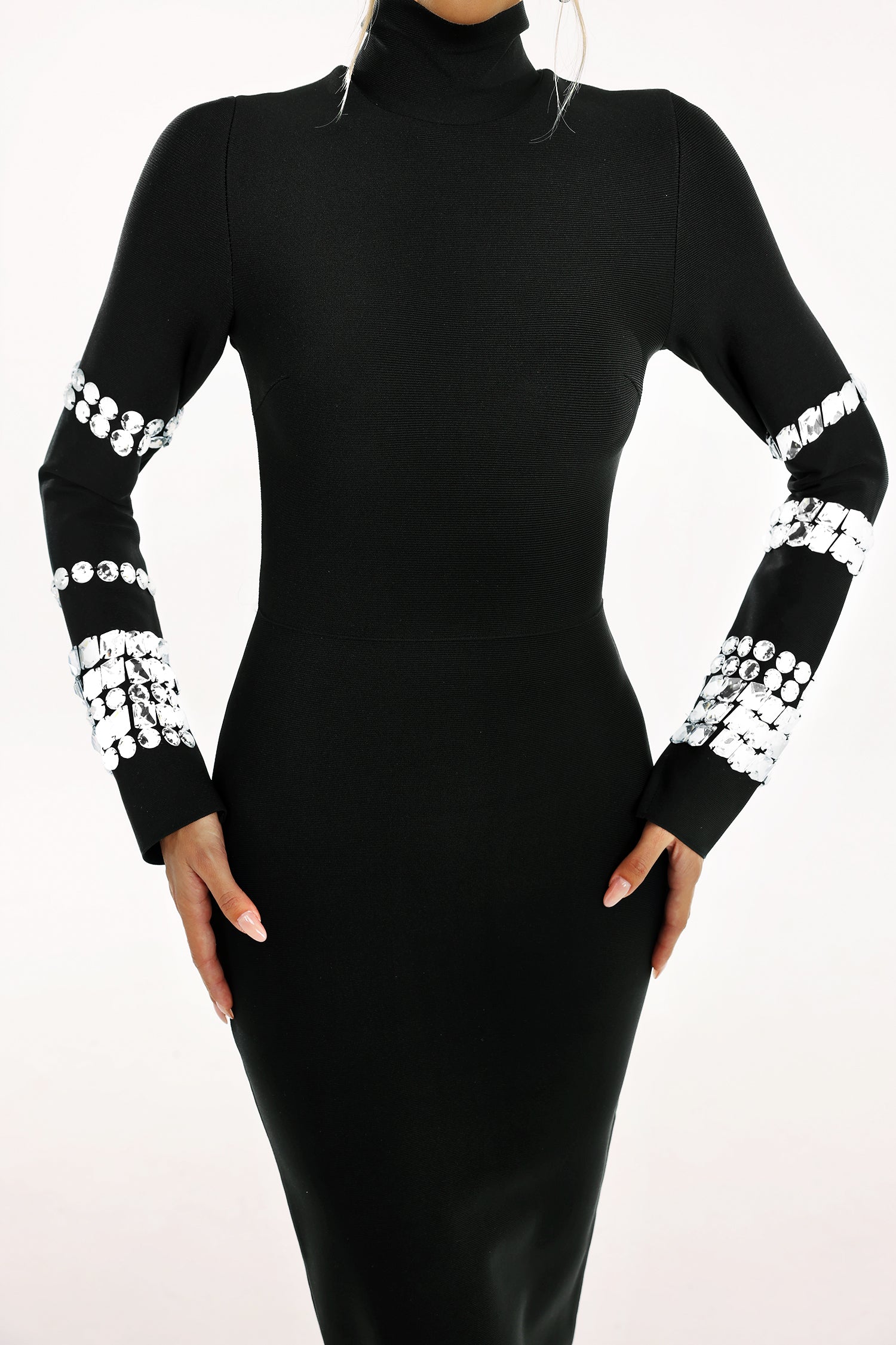 Phoebe Diamante Long Sleeve Bandage Dress