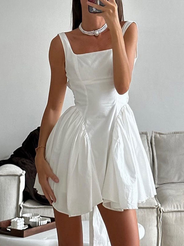 Pleated Tie Back Ruffle Mini Dress