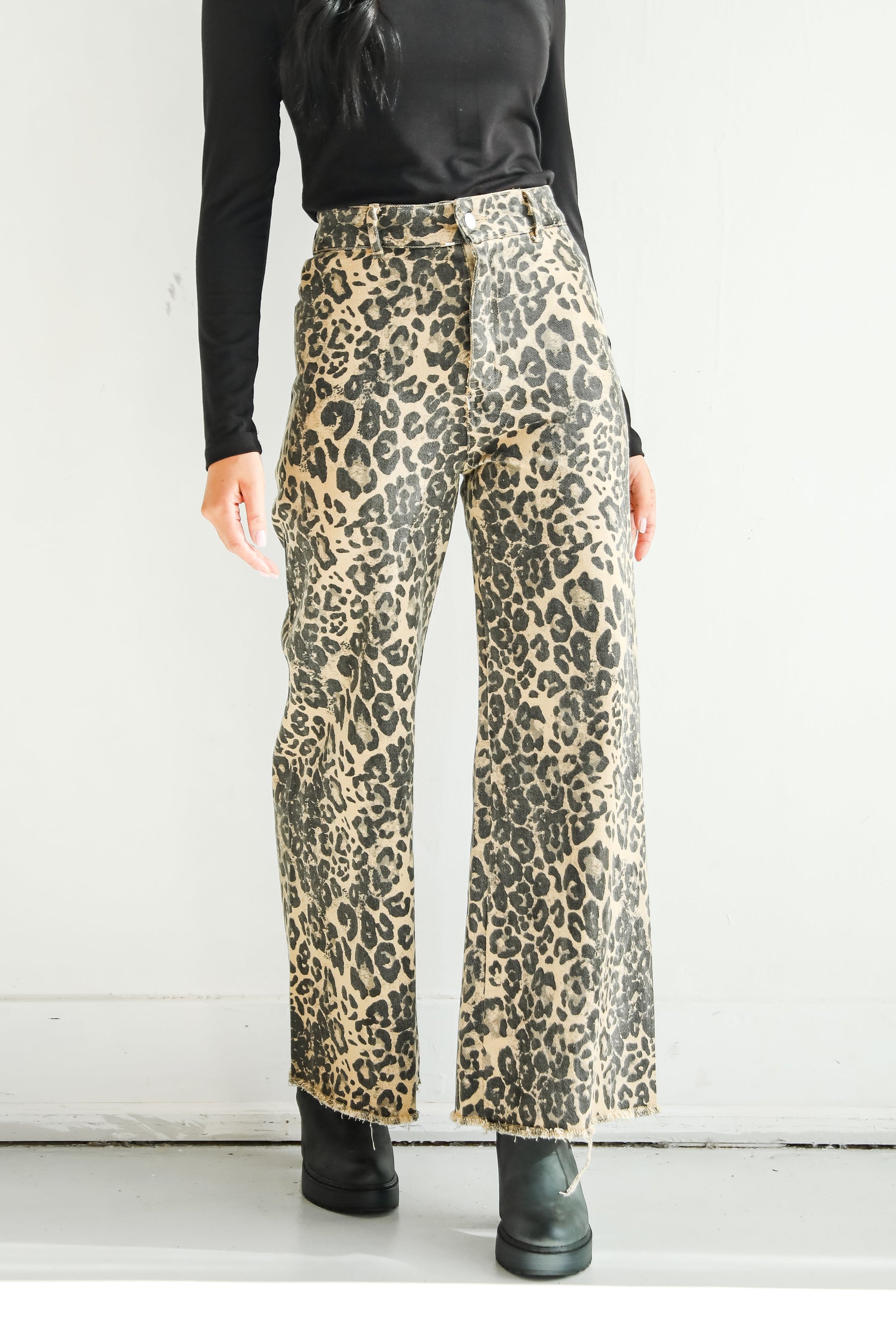 Poised Curation Leopard Wide Leg Jeans