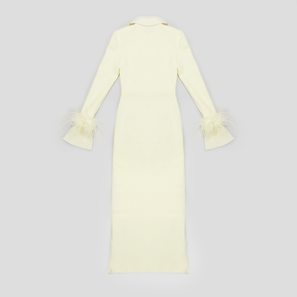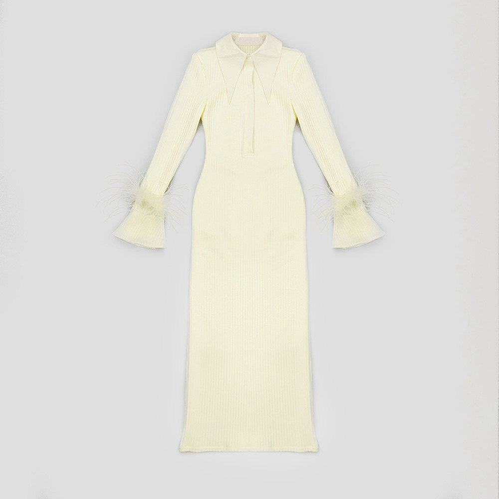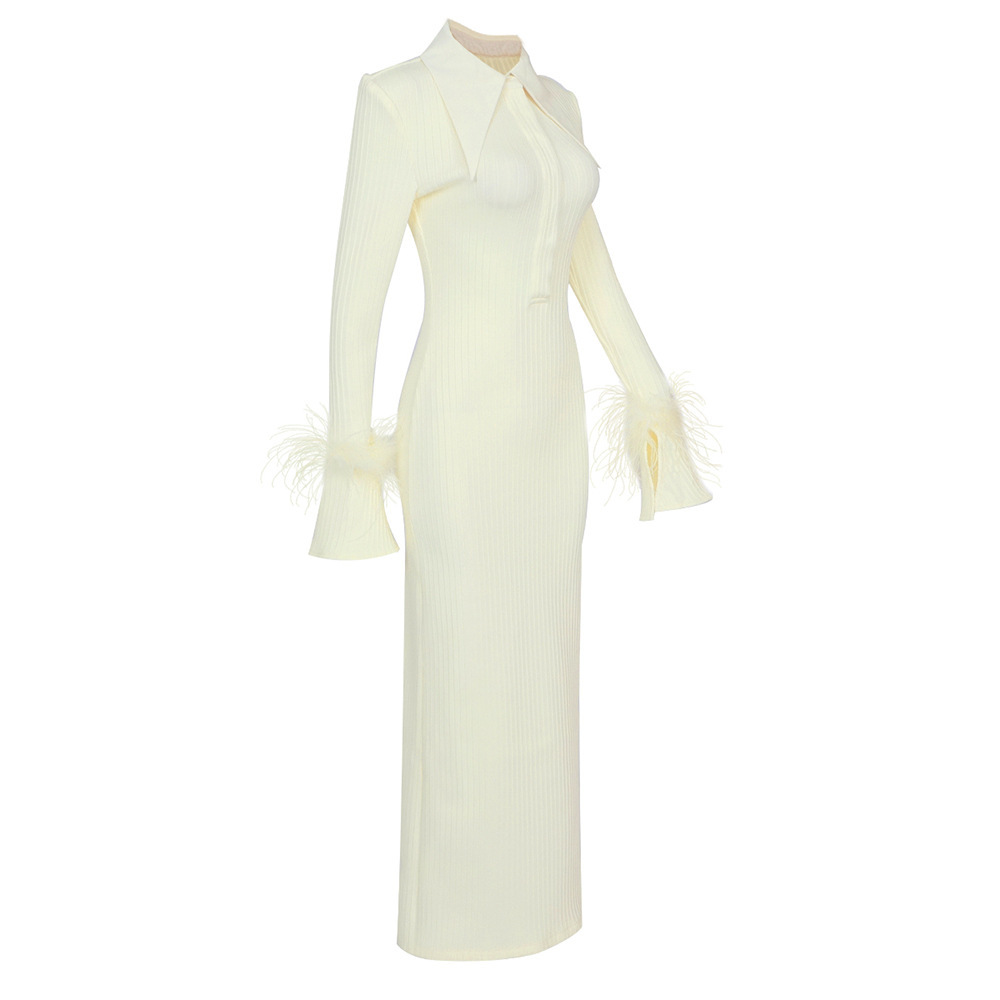 Polo Collar Long Sleeve Feather Stitching Long Evening Dress