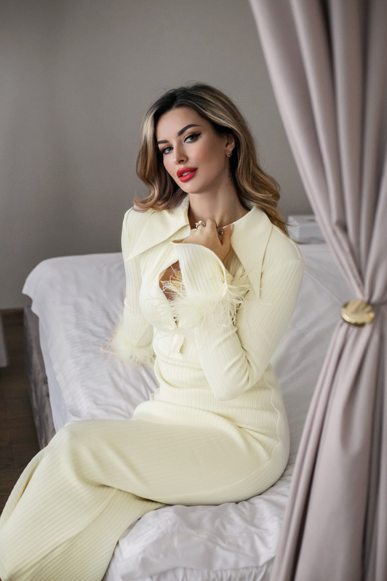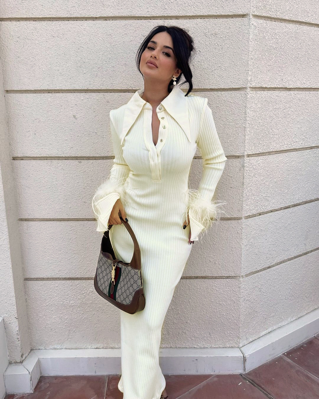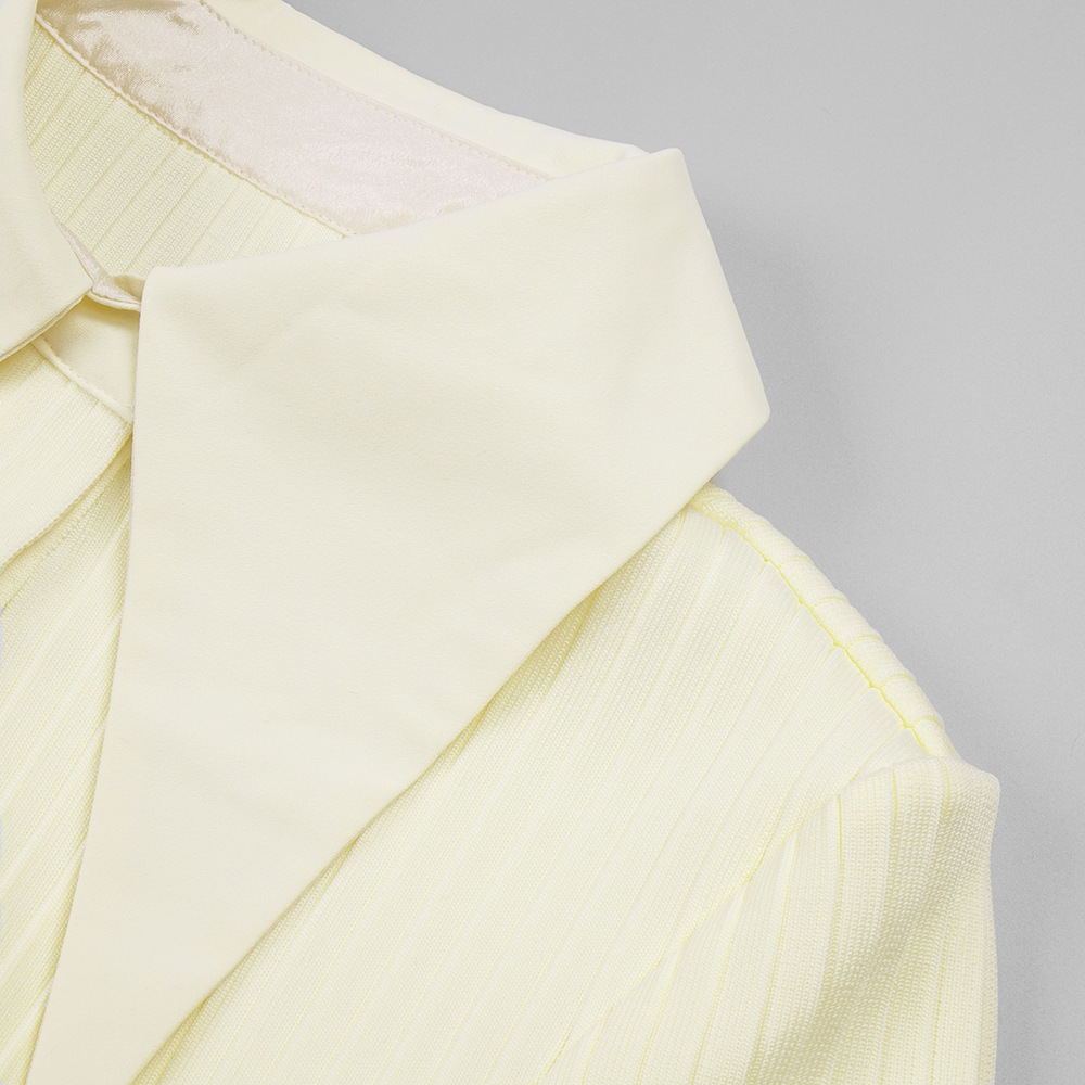 Polo Collar Long Sleeve Feather Stitching Long Evening Dress