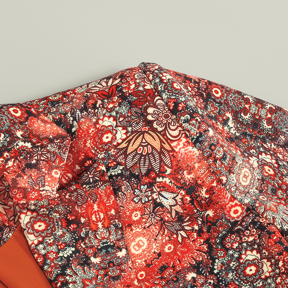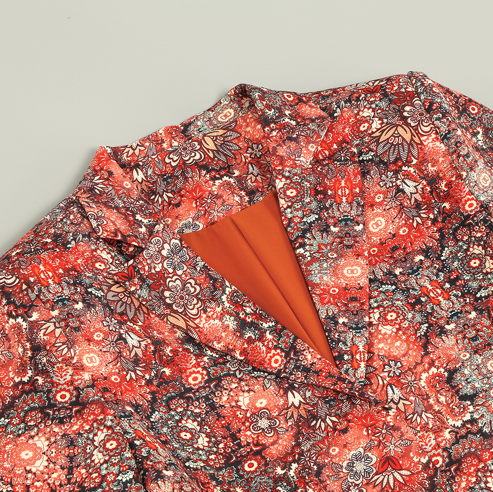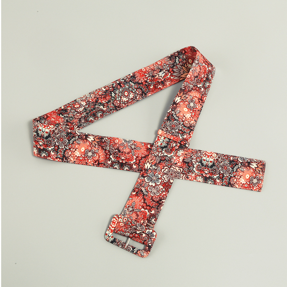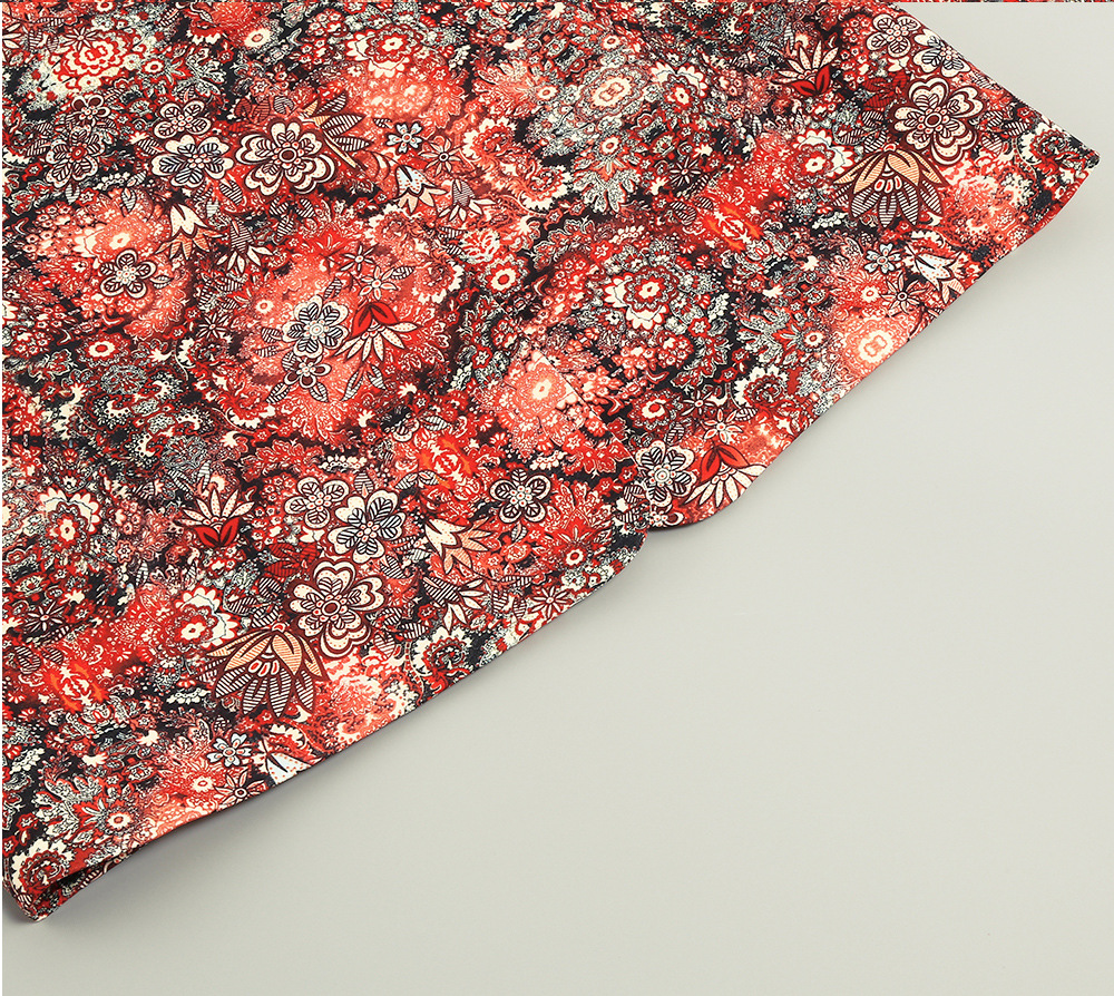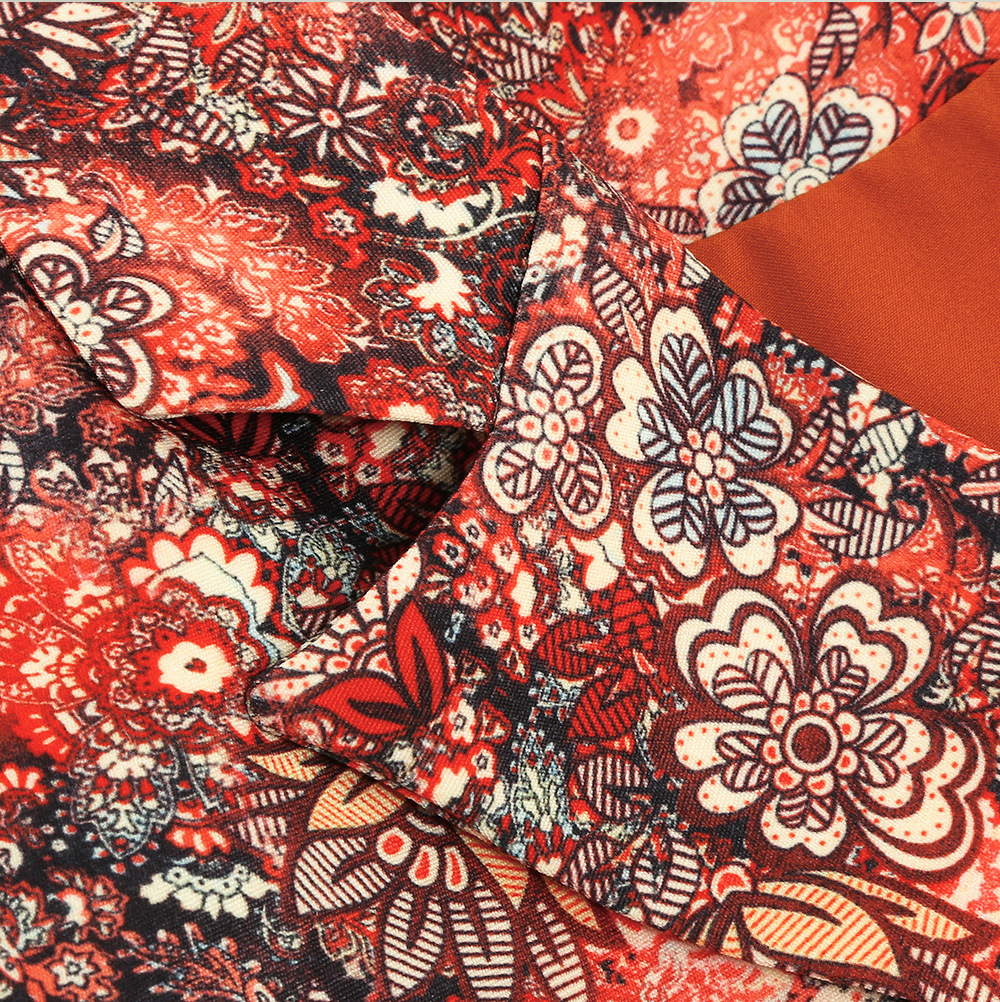 Printed Feather Cuff V-Neck Belt Suit Dresses High Waist Floral Dress