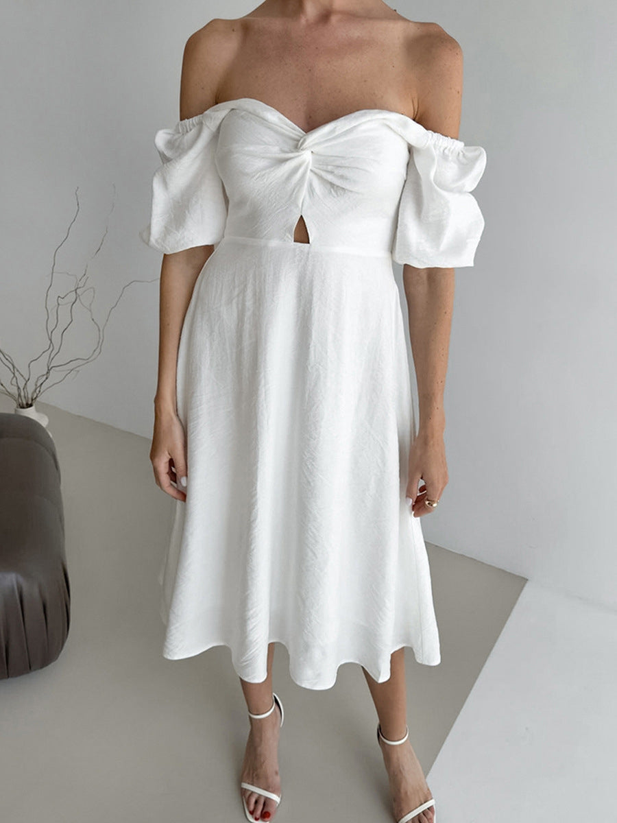 Puff Sleeve Hollow Out High Waist Maxi Dress