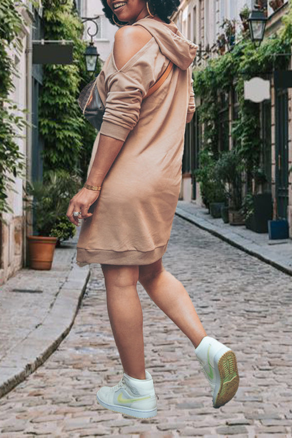 Casual Solid Colors Cold Shoulder Hoodie