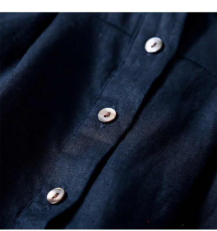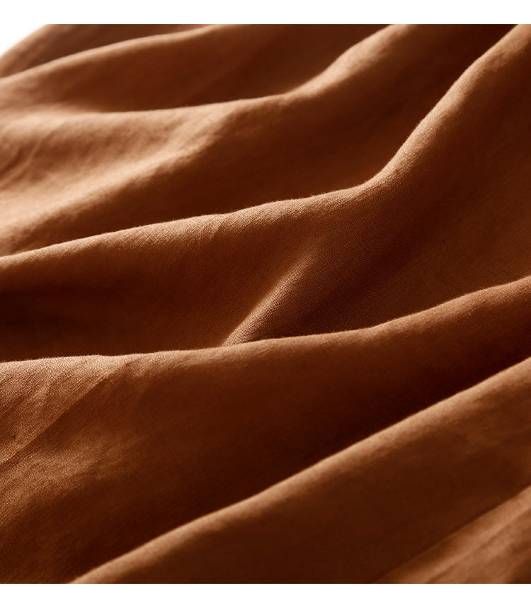 Retro Contrast Color Cotton Linen Dress