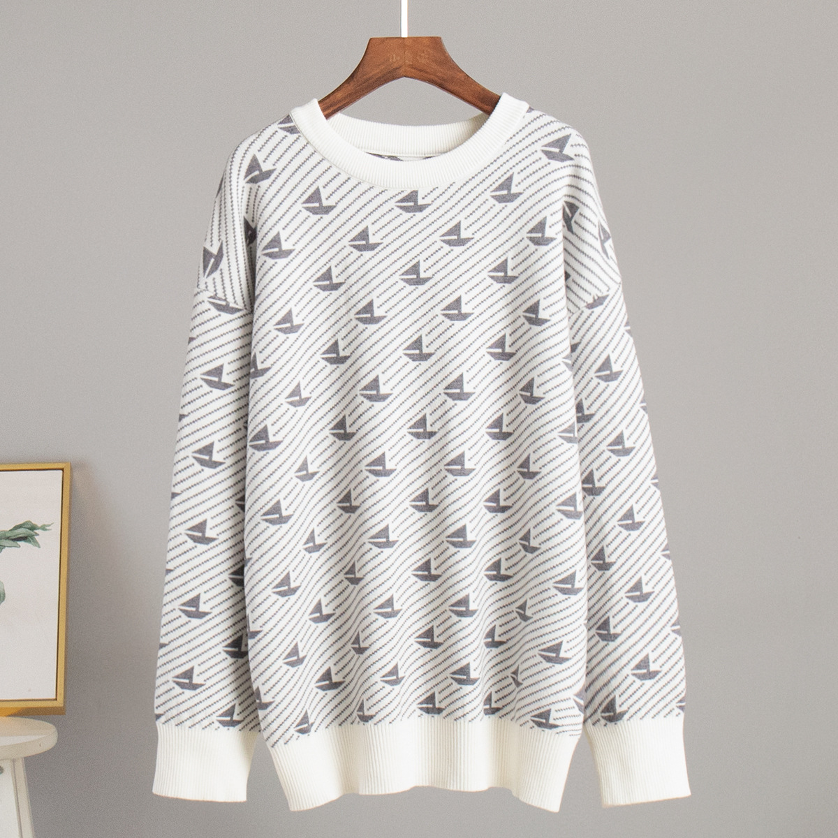 Round neck sailing sweater winter commuter loose knitted pullover women's top