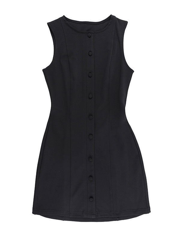 Red brings energy and confidence. making this sleeveless mini dress a bold choice for any occasion. With a round neckline and button-down front. it's effortlessly stylish and easy to dress up or down.