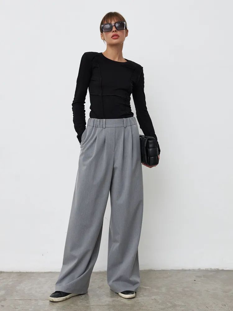 Round neck T-shirt female 2024 spring and autumn Leisure Line stitching long sleeve bottoming top