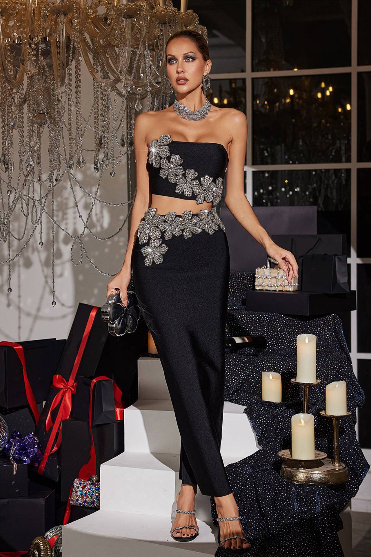 Experience the ultimate sophistication and glamour with our Seraphina Strapless Flower Skirt Set. The luxurious satin fabric with a ruched design and a daring split will elevate your style game. Look effortlessly elegant and confident in this must-have set.