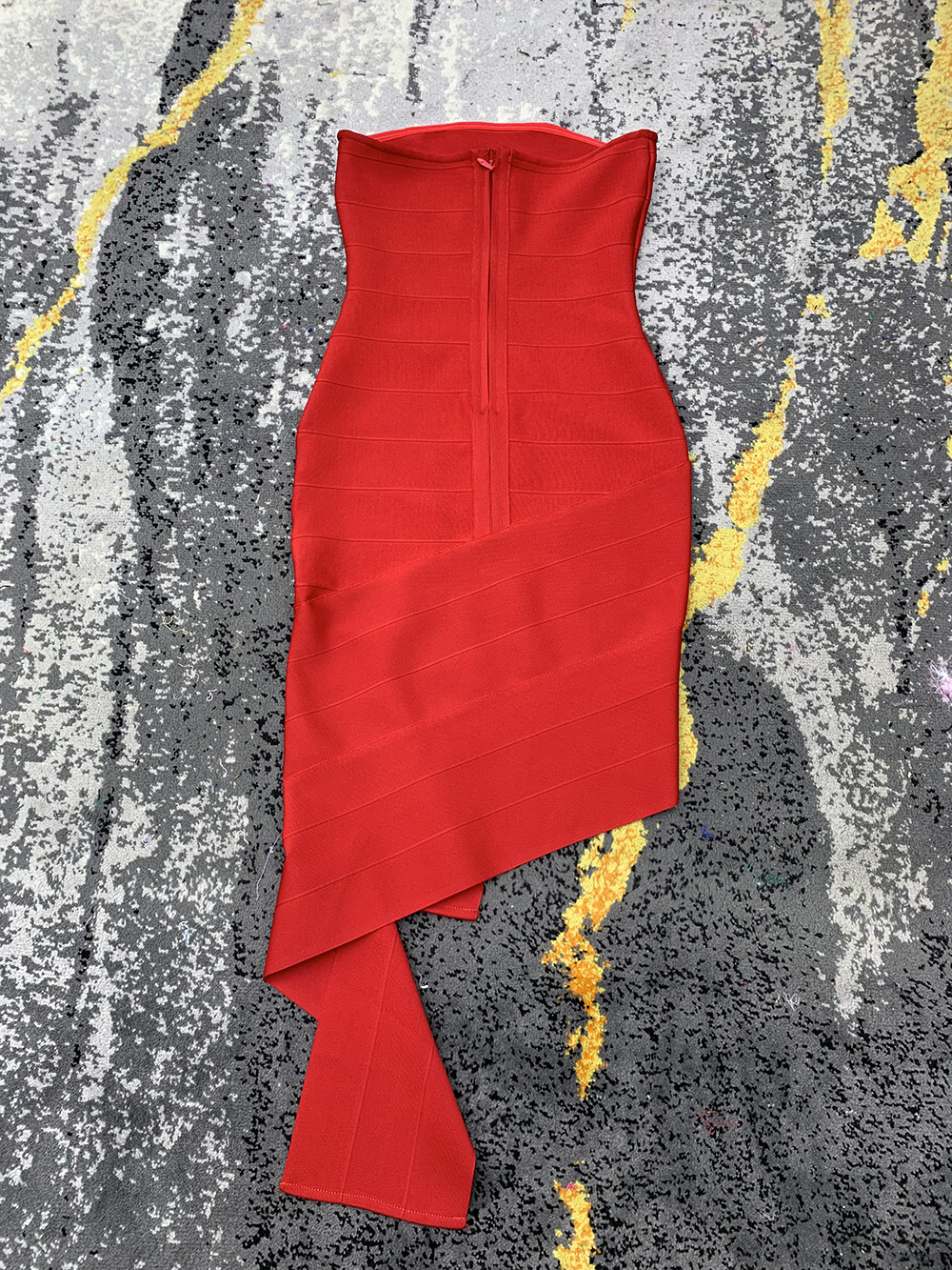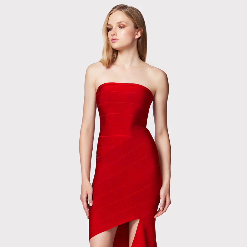 Sexy Bandeau Backless Asymmetric Hem Slim Bandage Dress